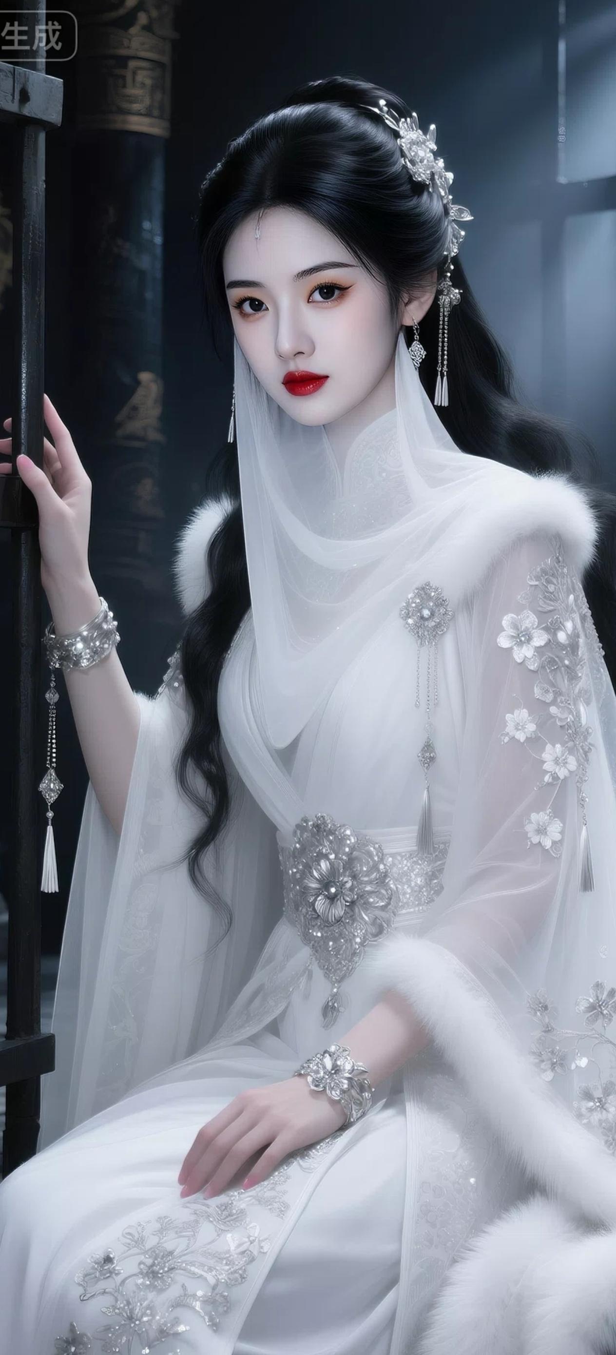 古韵仙姝步履轻,罗衣飘拂似云行。 眉如远黛含秋水,目若星辰映月明。 雅韵盈怀诗韵