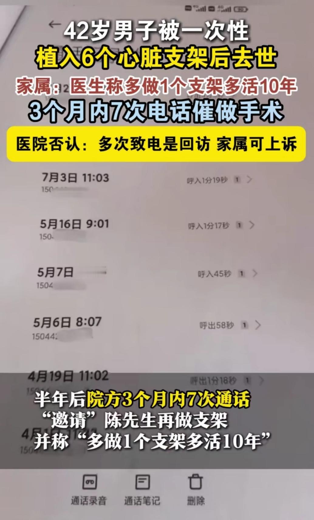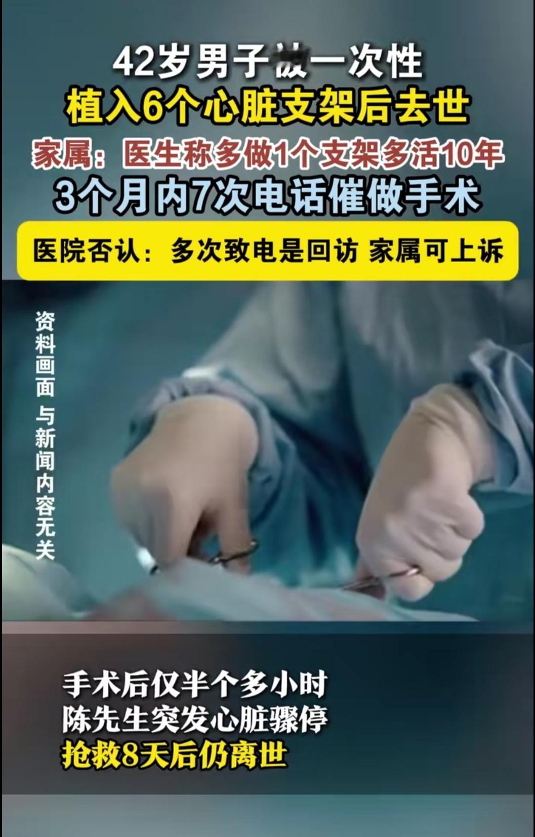到底是我认知出问题了,还是有些操作太离谱?吉林42岁大哥,术前没啥不舒服,就因为医院3个月打了7通电话催手术,说“多装支架多保命”,结果一上手术台就被塞了6个,术后8天直接没了! 这事儿怎么想都透着诡异啊!6个支架是身体真的需要,还是有别的门道?术前没手术指征,鉴定报告都明说医方有过错,怎么医院还能狡辩是“术后回访”?1个支架1.5万,凑够人数才请专家的说法,难道治病成了凑数敛财的生意? 上有老下有小的顶梁柱,就这么没了。普通人看病是想活命,不是来当“冤大头”的啊!真的搞不懂,救死扶伤的地方,怎么会出现这种让人寒心的操作?到底谁能给个明白说法,不让好好的人白白送命?