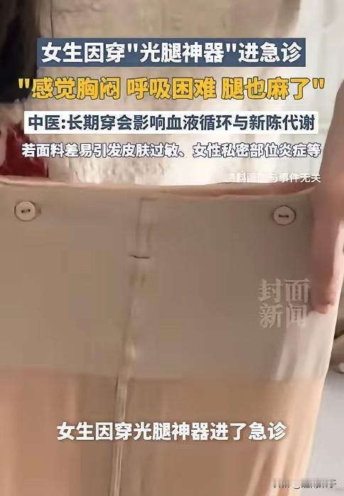 张女士突然喘不过气,胸闷,腿发麻没知觉。送去医院急诊后发现,真凶是女生喜爱的“光腿神器”导致的。 12月18号,张女士有个重要活动,既要风度又要温度,这俩本来就是死对头,很难两全。 为了不穿得像个球,显得臃肿,她经过再三挑选,盯上了那个传说中的“光腿神器”。还是加厚款的,听着就暖和,看着跟光腿似的,这谁能顶得住? 刚穿那会儿,确实美,镜子前一照,线条流畅,也不显臃肿,心里美滋滋的去了活动现场。活动从下午一直折腾到晚上,这一站就是好几个钟头。 开始还没啥事,慢慢的,不对劲了。她感觉胸口像压了块大石头,气儿都喘不匀,有一种莫名的憋闷感。 更要命的是腿,先是发麻,后来那种麻木感顺着腿往上爬,双腿像是不属于自己了一样,不听使唤。 换做是平时,可能早把裤子脱了透气,可这是在重要场合啊,周围都是人,张女士只能面带微笑,硬挺着。 那种感觉,估计只有经历过的人才懂,表面上光鲜亮丽,背地里已经在鬼门关转了一圈。 最后实在扛不住了,这哪是打扮啊,简直就是渡劫。家人一看不对劲,赶紧把她送去了医院急诊。医生一查,原因简单粗暴:那条裤子太紧了。 虽然紧身是能显得腿瘦,但也把血液循环给阻断了。下肢的血液长时间流不上去,回流也受阻,身体能不难受吗? 这就好比你拿根橡皮筋紧紧勒住手指,时间久了肯定发麻发紫,这道理大家都懂,可一到了腿上,为了美,大家就选择性失明了。 这事儿一出,网友们炸锅了。 有人说这不就是现代版的三寸金莲吗?为了美受那份洋罪。还有人说这玩意儿简直就是“美丽的刑具”,穿上确实瘦了,但血流都不通畅了,健康都没了还要那身材干啥。 其实想想,咱们现在为了所谓的“显瘦”,干的傻事儿还少吗?那些勒得肋骨疼的内衣,走路都费劲的紧身裙,还有这能把腿勒得没知觉的“神器”,哪一个不是在透支身体? 说白了,这“光腿神器”也就是个打底裤,换个皮囊,改个色儿而已。很多女性朋友买的时候,光顾着看它显不显腿长了,是不是仿真皮了,把舒适度抛到了九霄云外。 为了追求那种极致的紧绷感,非要买小一码,甚至买那种超高压的款式,结果把血管都给挤没了地儿。 医生也说了,这种衣物千万别为了“瘦身”就硬勒,松紧适度最重要。你想想,下肢血液回流不畅,时间长了,胸闷、气短那是轻的,搞不好真会引发更严重的血栓问题。 以前也发生过类似的,有的为了穿小码鞋子把脚趾骨都给挤变形了,有的穿束腰把内脏都给挤移位了,最后躺在病床上悔不当初。 这跟旧社会的裹脚布本质上有什么区别?无非就是一个是别人逼的,一个是自己逼自己。 咱们常说,身体是革命的本钱。 为了在朋友圈里多几个赞,为了在聚会上被夸一句“你好瘦”,就把自个儿的血管当儿戏,这笔账怎么算都亏大了。 张女士这回是吃了个大亏,但也给咱们提了个醒。冬天穿得稍微厚点,显点肉怎么了?那是保命用的,是真暖和啊。 别为了那一点点视觉上的“瘦”,去挑战身体的底线。 毕竟,谁也不想美美地出门,最后被人抬着进医院吧?下次再买这玩意儿,还是先摸摸良心,再看看尺码表吧。