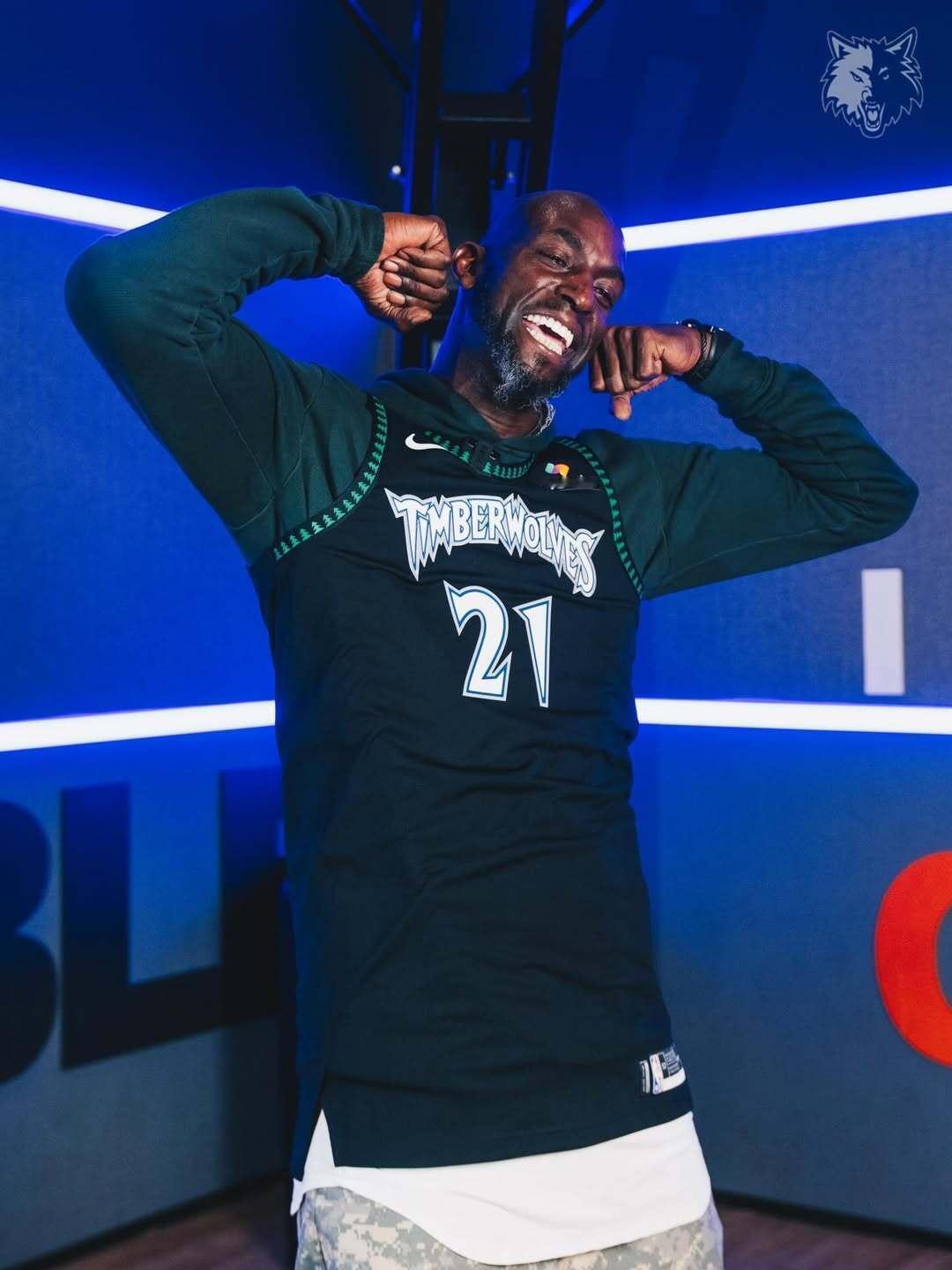 森林狼官方晒加内特身着球队经典复古球衣的照片,唤起了无数的回忆