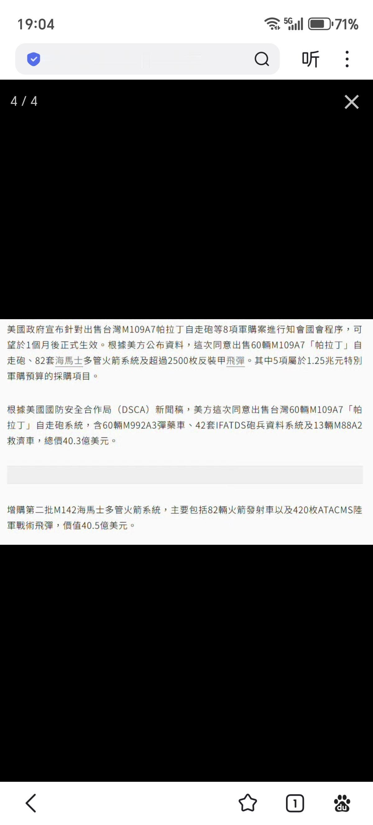 美国政府批准向中国台湾出口60辆M109A7「帕拉丁」自行火炮、82辆“海马斯”自行火箭炮发射车,以及420枚ATACMS陆军战术导弹。 目前台湾已经装备了11辆“海马斯” , 尚有18辆正在交付中,加上第二批采购的82辆,总数将达到111辆 !