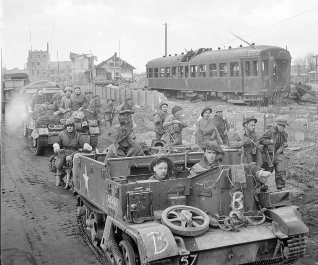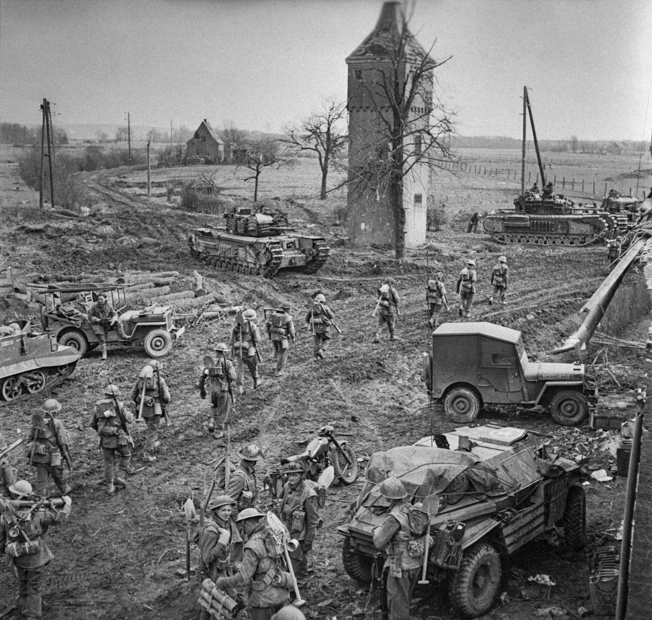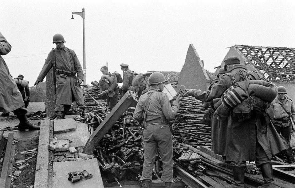 二战末期,盟军德国境内作战真实历史留影! 图一:1945年3月,美军第741坦克营的M4A1“犀牛”坦克正经过1座用钢板临时搭建的临时桥梁。(地点不详) 图二:‌1945年4月,1辆隶属于美军第100步兵师第781坦克营的M4A3"谢尔曼"坦克,正在等待穿越海德堡的内卡河。坦克组员们有的席地而坐、有的直接坐坦克炮塔上,悠闲地享受日光浴。 图三:‌1945年2月,戈赫‌镇,英军第53威尔士师的‌通用全履带装甲运兵车‌与步兵正一道行进中。 图四:‌1944年10月,盟军攻入第三帝国境内,首场城市争夺战——亚琛战役打响。美军正在与纳粹德国守军展开激烈巷战。 图五:1945年3月,英军丘吉尔坦克、吉普车、侦察车与步兵们在克文海姆小镇附近集结。 图六:‌1945年,莱茵河附近,美军M1迫击炮分队正在轰击德军阵地。 图七:1944年10月中旬,亚琛,1名美军士兵正蹲伏在1座被击毁的47毫米反坦克炮掩体后与德军狙击手对战。 图八:1945年,美军俘虏1批法国武装党卫军“查理曼”师士兵。后续,这些俘虏被移交给了戴高乐领导的自由法国军队。最终勒被克莱尔将军全部被处决。 该师主要成员为极度反苏的原“法国志愿军团”与1944年诺曼底登陆后逃往维希傀儡政府的“法兰西民兵”残余人员及少数自愿加入的法军战俘。该师也成为纳粹德国武装党卫军中唯一一支以法国人为主体的师级战斗单位。绝大多数成员要么战死要么被苏军俘虏后死在了战俘营。 图九:1945年5月,纷纷越过易北河奔逃至美军防区的德军士兵正在缴械投降。清晰可见,枪械已经堆积如山,可见此时德军已完全崩溃。 图十:1945年2月底,杜伦,美军第8步兵师的士兵正原地待命,准备随时肃清周边建筑物内的德军。老照片 二战 武器装备 结语:欢迎朋友们关注、点赞,评论区发表宝贵观点与建议,并‬将来自己‬感兴趣‬的‬历史‬事件‬留言‬下来‬。我‬将尽力‬搜集‬资料‬,整理成篇,与‬您‬共勉‬! 您的慷慨支持是我持续创作更新的永续动力。文中常有时间地点不详或地名无法译出之状况,若您有案可查,请帮忙斧正补充!