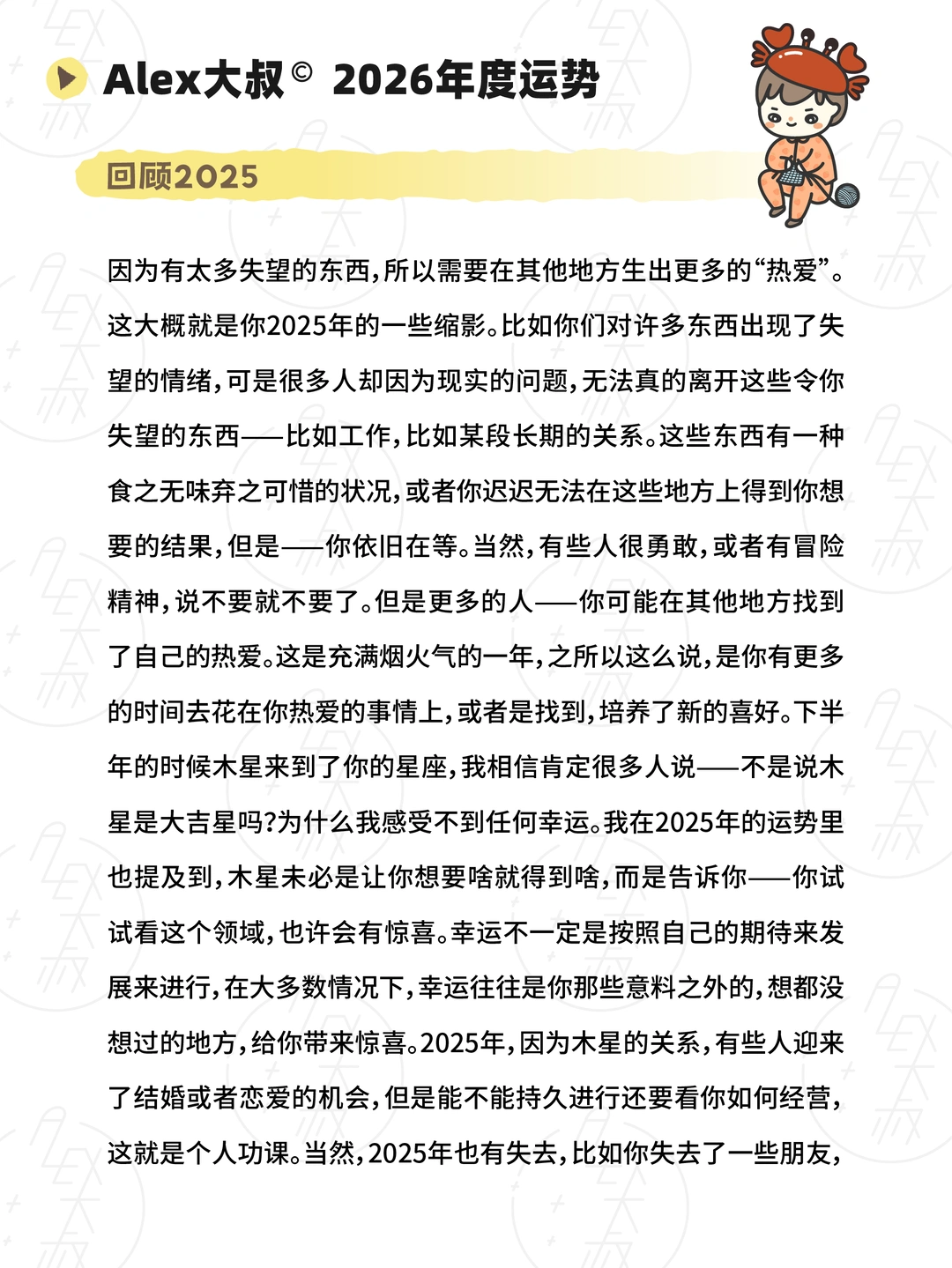 Ps: 大众运势无法对应到每个人,这是它的局限。我无法成为所谓的“指路明灯”。但如果年运的这些只言片语,能在某些时刻让你感受到共鸣、获得启发,并更好地生活在当下与未来,那么它的意义,已经足够。