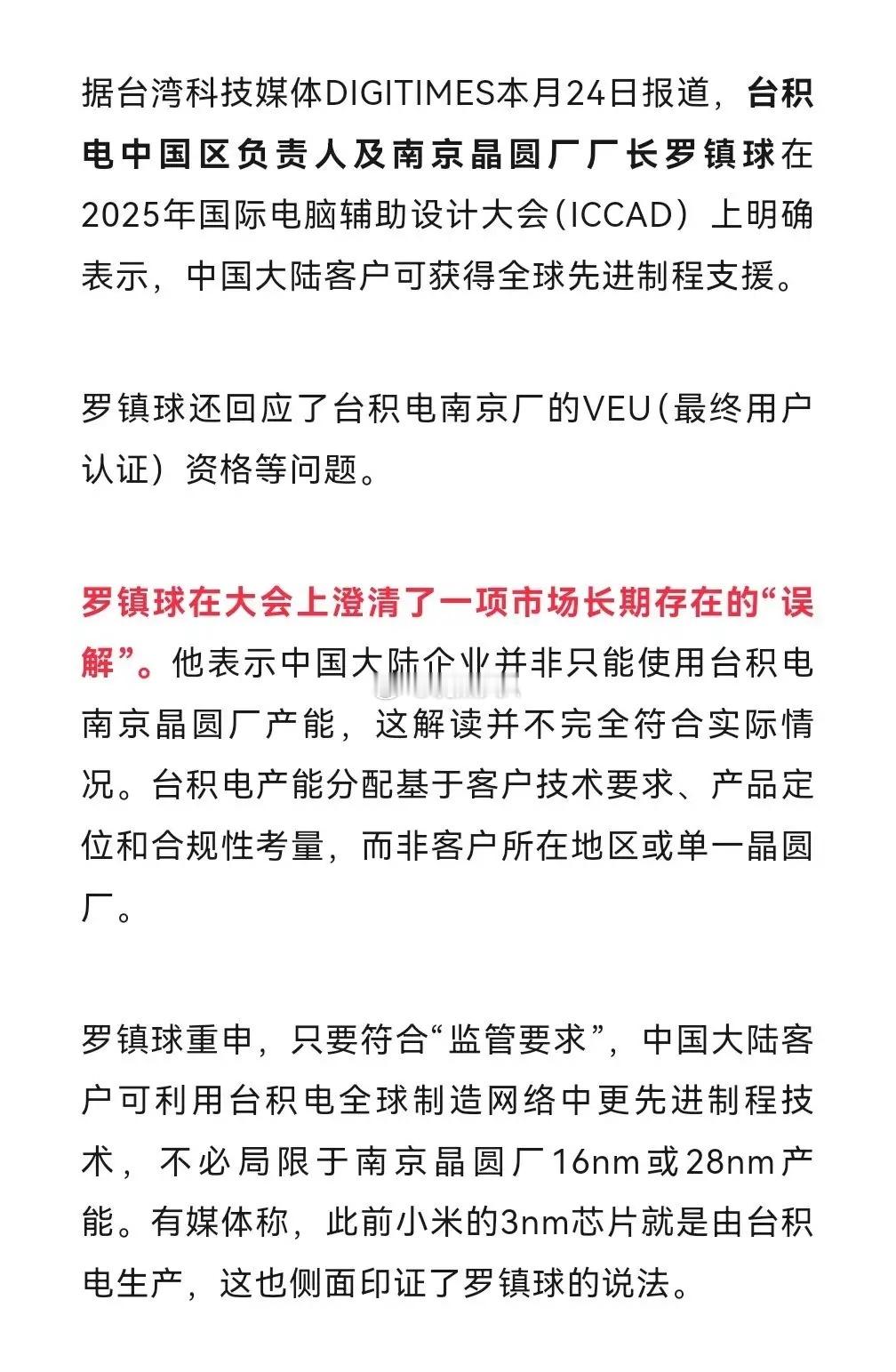 看来国产芯片问题基本解决了!台积电高管直言,中国大陆客户可获全球先进制程支持。看来咱们的高阶芯片加工追上来了,台积电或许要跳反,果然只要是自己强大了,什么都会主动过来。自己手上没点家伙,这些小丑会这么听话吗? 陈平安的含金量还在上升,虽然剑来情节写的分崩离析,但是关键几句话,还是颇有画龙点睛的意味!我只能说,4v人的“护国神山”要塌了,台积电这种首鼠两端的让它死算了啊。