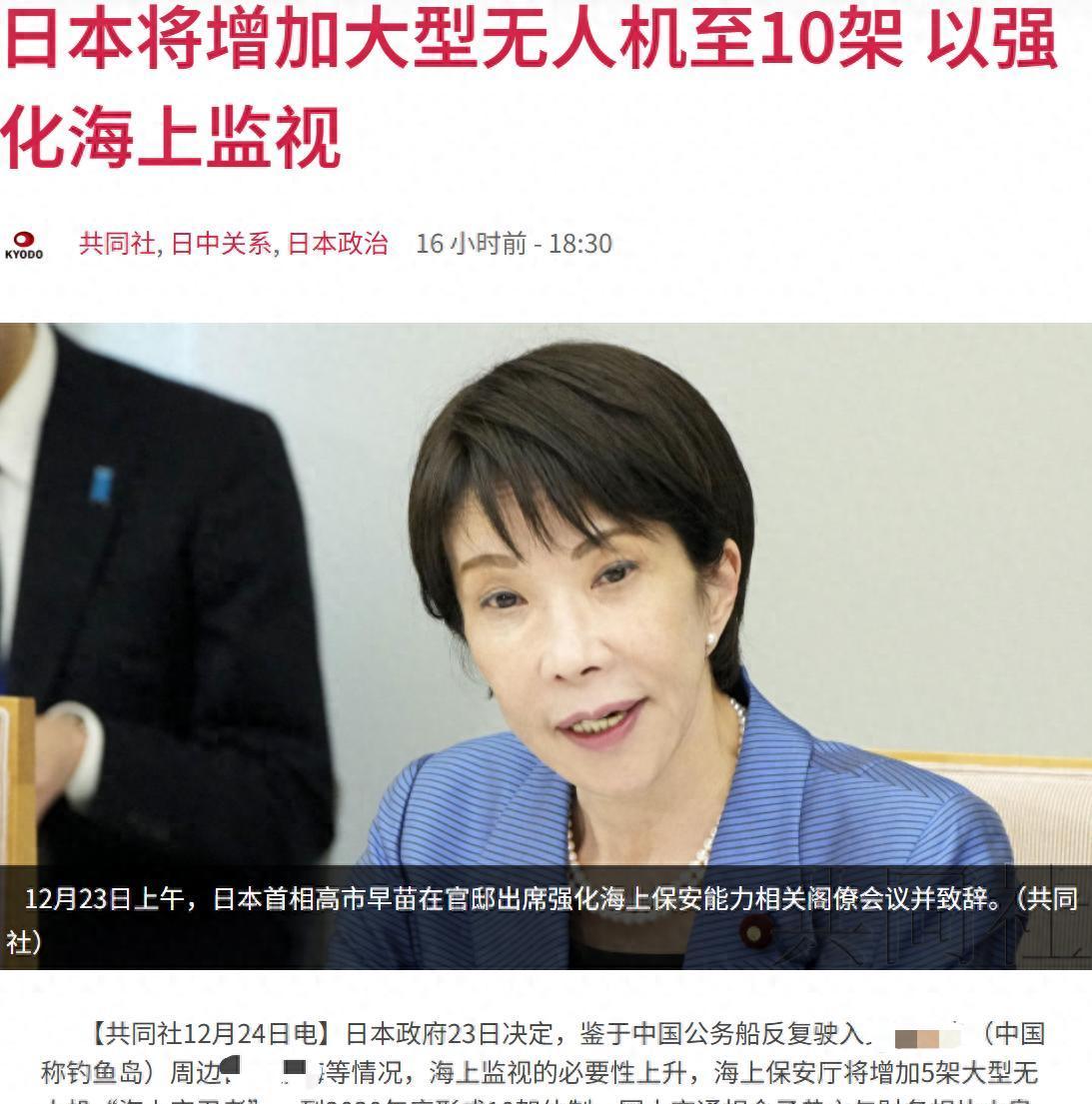 多10架无人机就能拿下钓鱼岛? 12月24日共同社称,日本认定钓鱼岛周边监视压力增,因中国公务船常现。海上保安厅拟再加5架大型无人机,配中型喷气机,目标到2030凑齐10架,翻倍提速。12月23日,高市早苗一边喊改善海保官待遇,一边给巡逻船上更稳网络、修宿舍,实则押装备。 石垣市议会12月15日说要登岛立标柱,声大难落地。舞台改到天上。用MQ-9海上守卫者,能飞1天,爬至万米,看远超4000公里,补长时盯场短板。中国海警今年巡航355天,日本想换赛道。 短板也在:速度不快、无自卫,电子战压一压,容易失眼。中国接招不难:反侦察链路,守空域红线,入侵我领空,依法处置。无人机多了,主权不会变。局势在升温,节奏还可控,看谁更稳。