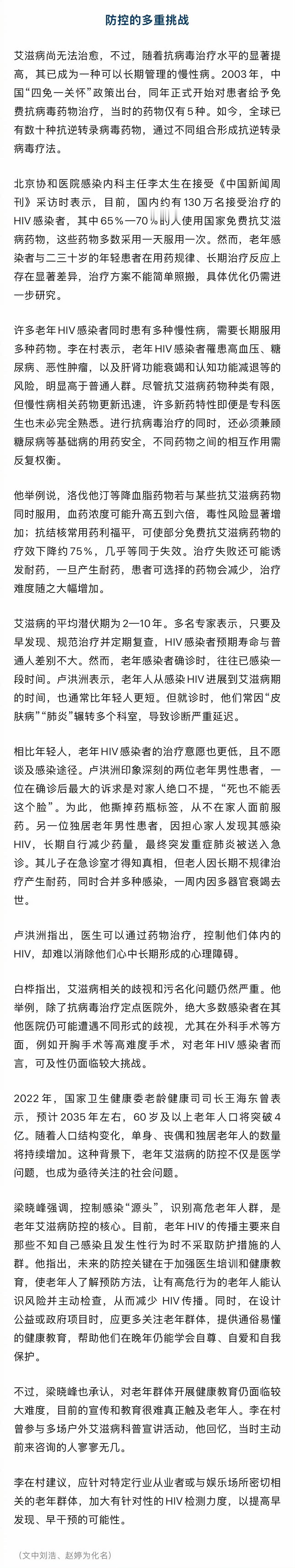 惊!8旬老人染HIV,老年群体防艾警钟敲响! 今日热推 家人们,看到“8旬老人与保姆发生性关系感染HIV”这个标题,我整个人都麻了!这简直是给我们敲响了一记震耳欲聋的警钟。近年来,我国艾滋病疫情虽总体低流行,但新发老年HIV感染者占比却一路飙升。 今年广东、浙江等地高龄HIV病例占比明显增加,浙江新发HIV病例里,50岁以上中老年群体占了39.2%。这可不是一个小数字,意味着越来越多的老年人正面临着艾滋病的威胁。中国疾病预防控制中心原副主任梁晓峰还指出,随着老龄化加剧,老年新发感染者数量可能还会涨。 这背后反映出什么问题呢?是老年人性健康知识的极度匮乏,还是社会对老年群体性需求和性健康的忽视?我们一直以为艾滋病离老年人很遥远,却没想到它正悄然逼近。很多老年人可能根本没有意识到危险,缺乏基本的防护意识。 我们不能再对老年群体的性健康问题视而不见。家庭、社会都应该行动起来,给老年人普及防艾知识,让他们了解艾滋病的危害和预防方法。这不仅是对老年人负责,也是对整个社会的健康负责。 大家觉得应该如何更好地向老年人普及防艾知识呢?在你身边,老年人对性健康和防艾知识的了解程度如何?快来评论区说说你的看法吧!社会百态 社会新闻