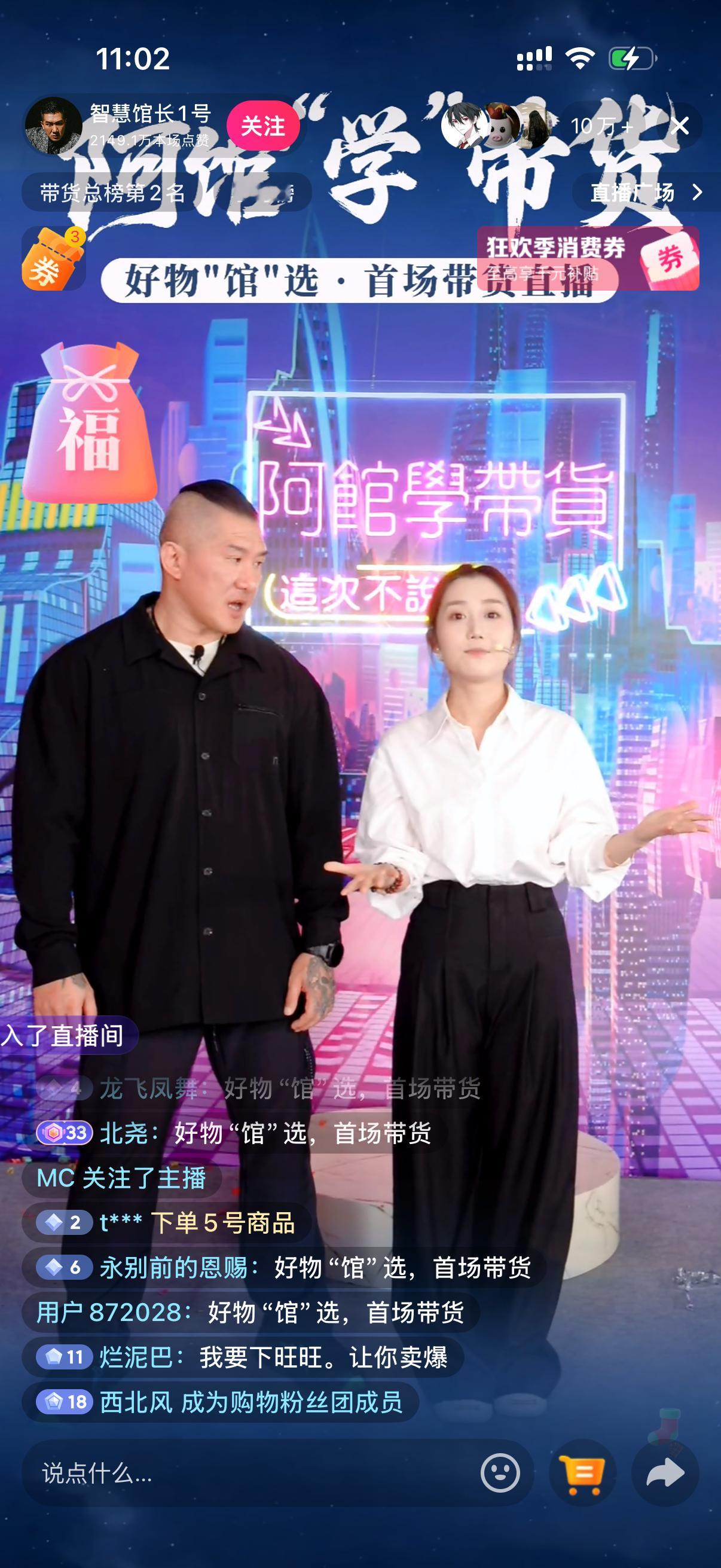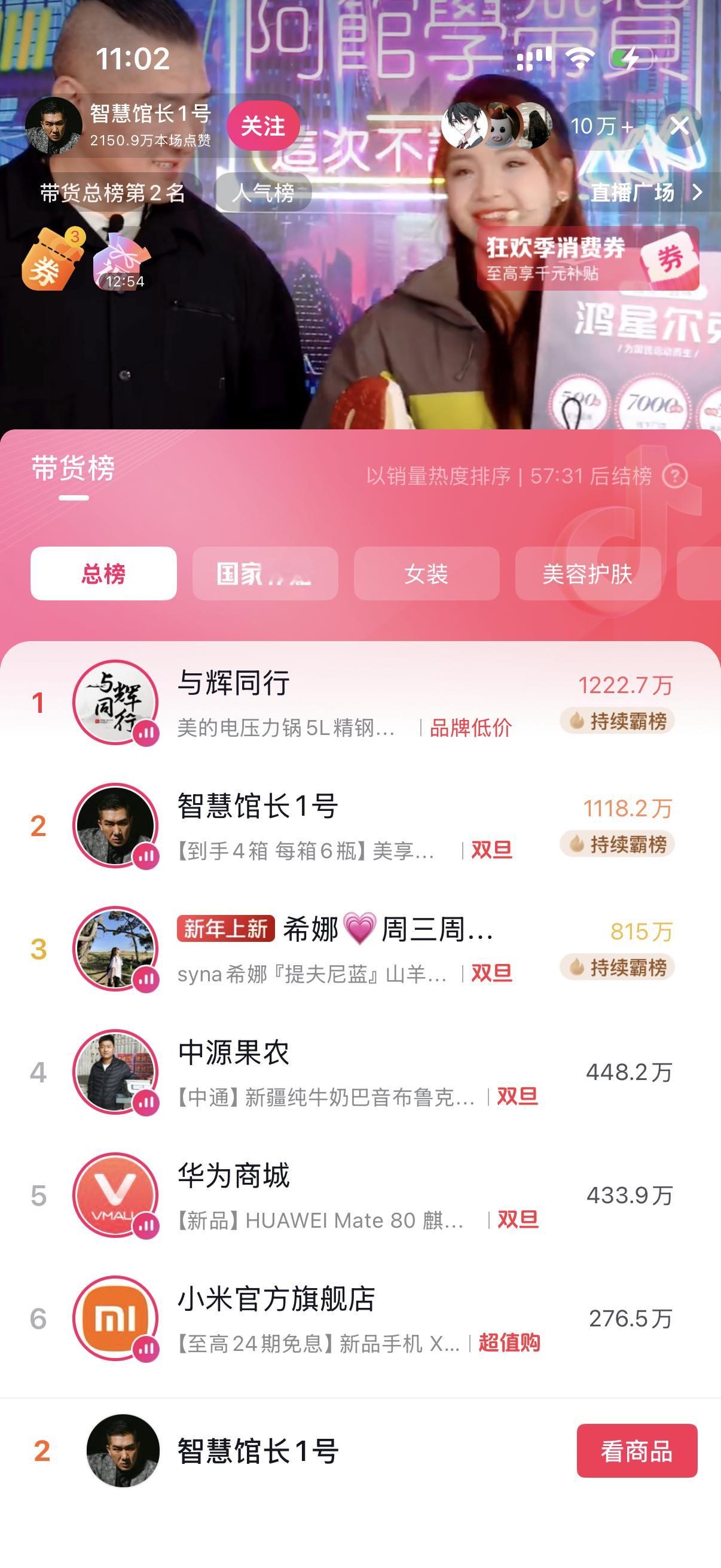 馆长开了个新号做直播带货,直播间人数10万+,销量榜要赶上与辉同行了,这么受欢迎