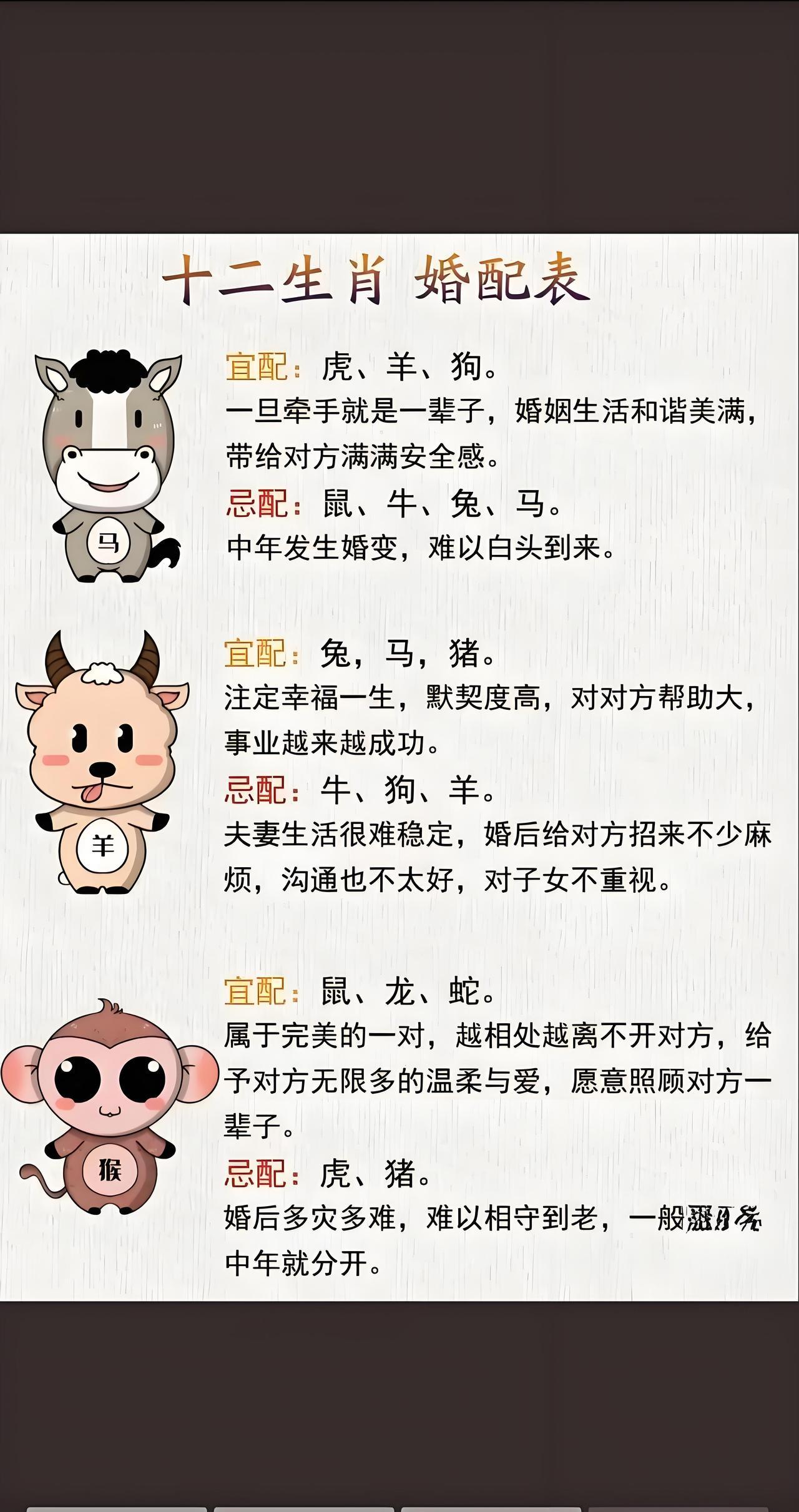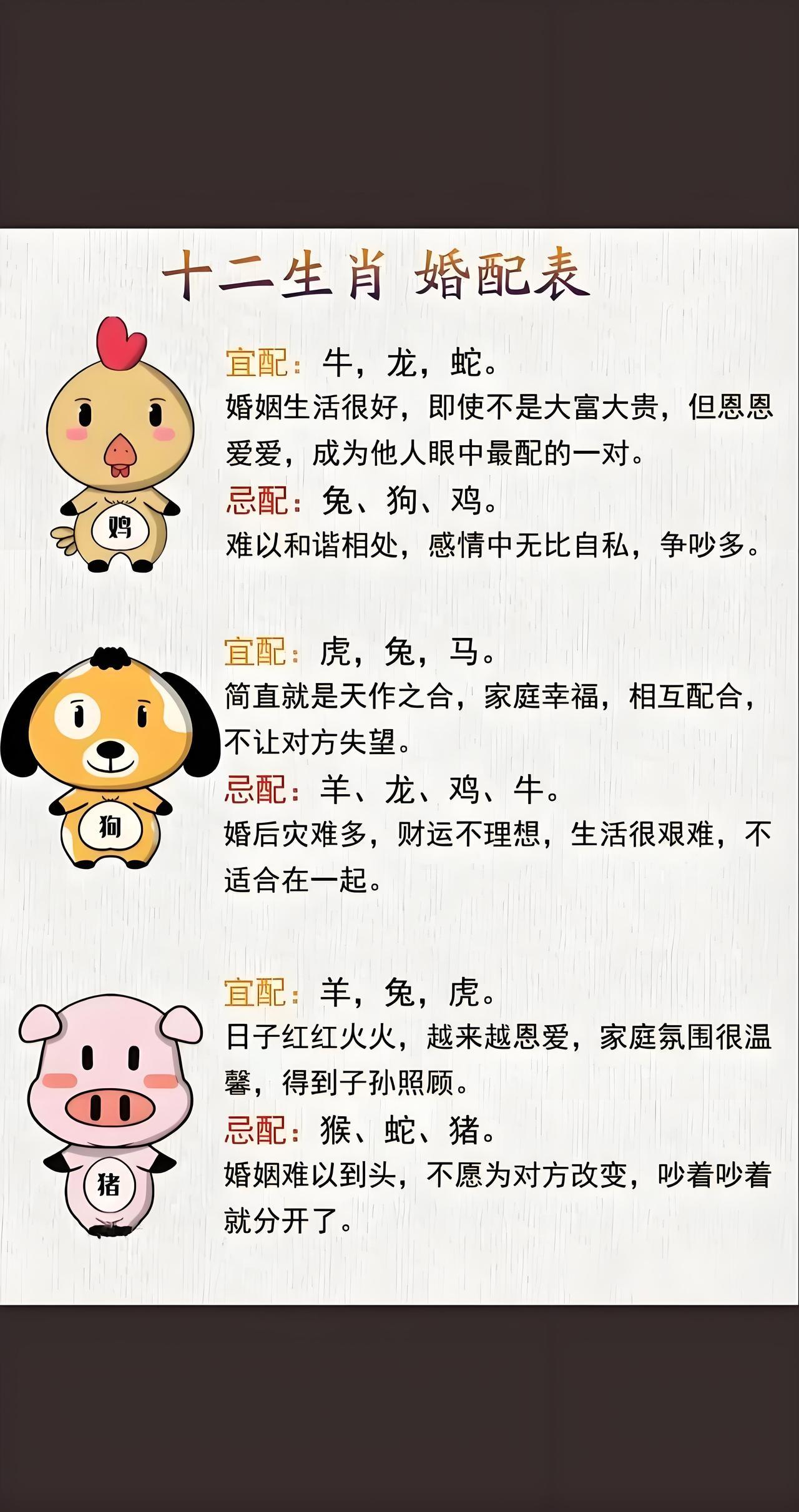 据说生肖超合拍的夫妻档来啦! 1. 鼠牛:把小日子过成教科书的勤俭夫妻 2. 虎猪:甜到齁的浪漫天花板组合 3. 兔狗:财运爆棚的富贵锦鲤夫妻 4. 龙鸡:干啥都默契的天选搭档 5. 蛇猴:挑不出毛病的完美适配组合 6. 马羊:一个眼神就懂的灵魂默契夫妻 7. 羊兔:取长补短的互补小能手组合 8. 猴龙:贴贴不停的亲密黏人夫妻 9. 鸡蛇:羡煞旁人的恩爱模范夫妻 你们是哪对神仙组合?评论区唠唠!