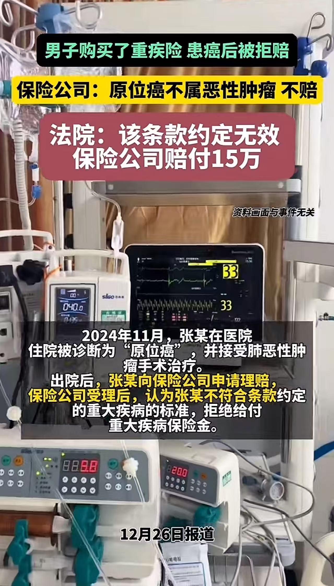 “这次保险公司输了!”男子长期坚持购买保险,患癌后申请理赔却遭保险公司拒赔!保险公司:“原位癌不属恶性肿瘤,不赔!”网友:投保时啥都赔,出险时,这也不赔,那也不赔!简直颠覆了三观! 张某,作为家里的顶梁柱,深知自己肩负着家庭的经济重任。他心里一直琢磨着,万一自己有个三长两短,家里可怎么办? 于是,他坚持购买某保险公司的人身保险,其中就包含了重大疾病保险。 这么多年来,张某从未申请过理赔,即便如此,他也一直按时缴费,从未间断,就盼着这份保险能在关键时刻发挥大作用。 时间来到2024年11月,张某突然感觉身体不舒服,心里隐隐有种不祥的预感。他赶紧去医院检查,这一查,犹如晴天霹雳——他被诊断为“原位癌”。 医生建议他尽快进行手术摘除,张某不敢耽搁,立刻按照医嘱住院,并接受了肺恶性肿瘤手术。 出院后,张某心里还庆幸自己当初有先见之明,购买了保险。 于是,他满心欢喜地拿着住院的相关资料,前往保险公司申请赔偿。他满心期待着,这份保险能给他和家人带来一些经济上的安慰。 然而,现实却给了他沉重的一击。保险公司的工作人员冷冰冰地告诉他,合同里明确约定了原位癌不属于恶性肿瘤,所以不予赔付。 张某听后,整个人都懵了。买保险的时候,业务员明明信誓旦旦地跟他说,重大疾病可以赔偿,癌症也在赔付范围内。现在自己得了癌症,却又不赔偿了,这原位癌难道就不是癌吗? 张某越想越气,觉得保险公司这是在耍无赖。于是,他一咬牙,把保险公司告上了法庭,要求保险公司给付他重大疾病保险金15万元,他要用法律来维护自己的合法权益。 在法庭上,保险公司辩称,张某所患的疾病并不属于条款约定的“恶性肿瘤”理赔范围。合同条款中对恶性肿瘤有着明确的约定:“指恶性细胞不受控制的进行性增长和扩散、浸润和破坏周围正常组织,可以转移到身体其他部位的疾病。” 保险公司认为,张某的肿瘤属于原位肿瘤,并非他们所定义的恶性肿瘤。而且,对于该项约定,他们已经尽到了提示与说明义务。 一审法院在审理过程中认为,保险条款内容涉及专业术语和复杂概念,保险人履行明确说明义务时,应当达到让普通人通常情况下能够明白地知晓免责事项的内容、含义及法律后果的程度。 对于一般人而言,原位癌的范围和疾病类型,如果不经过专业解说或者专门查询,根本无法具体理解。而保险公司并未能举证证明其对于免责事项中所涉及的原位癌术语,作出了常人能够理解的解释说明,所以不能认定保险公司已经履行了明确说明义务。 据此,一审法院果断判决,保险公司向张某给付重大疾病保险金15万元。保险公司哪能甘心吃这个败仗,不服一审判决,立刻提起了上诉。可二审法院经过仔细审理,最终驳回了保险公司的上诉,维持了原判。 此事引发热议,有网友说,原位癌就是恶性肿瘤,这个没得争论。原位癌属于最轻的恶性肿瘤,手术即可。但保险公司不能因为病人不幸中的万幸得的是原位癌就不赔付,这属于不要脸和没人性! 也有网友说,保险公司利用老百姓对专业术语的不懂,其相关条款具有隐蔽性、欺骗性,法院的判决是良心的判决。 还有网友说,我只问个问题,有多少人买重疾险时保险公司有跟你说过那些癌症是不赔的? 保险本应是人们在面对风险时的一把保护伞,是传递温暖与保障的桥梁。然而,一些保险公司却利用信息不对称和专业术语的壁垒,在条款上玩文字游戏,设置各种陷阱,让消费者在购买保险时一头雾水,在理赔时又处处碰壁。 这种行为不仅严重损害了消费者的合法权益,也破坏了整个保险行业的信誉和形象。保险行业若想真正赢得消费者的信任,就必须摒弃这种短视和逐利的行为,回归保障的本质,以诚信和专业服务消费者,否则,终将被市场所淘汰,被消费者所唾弃! 来源:安徽商报