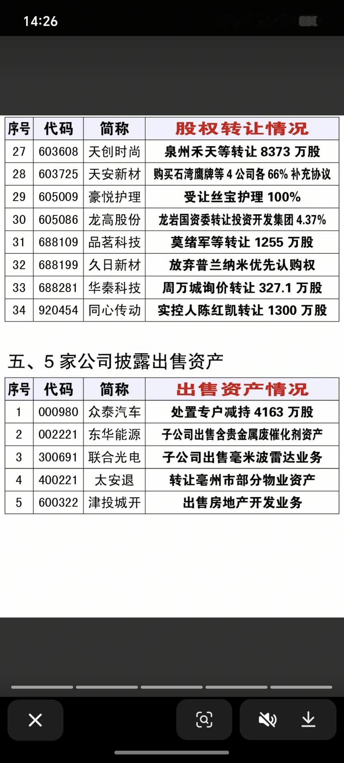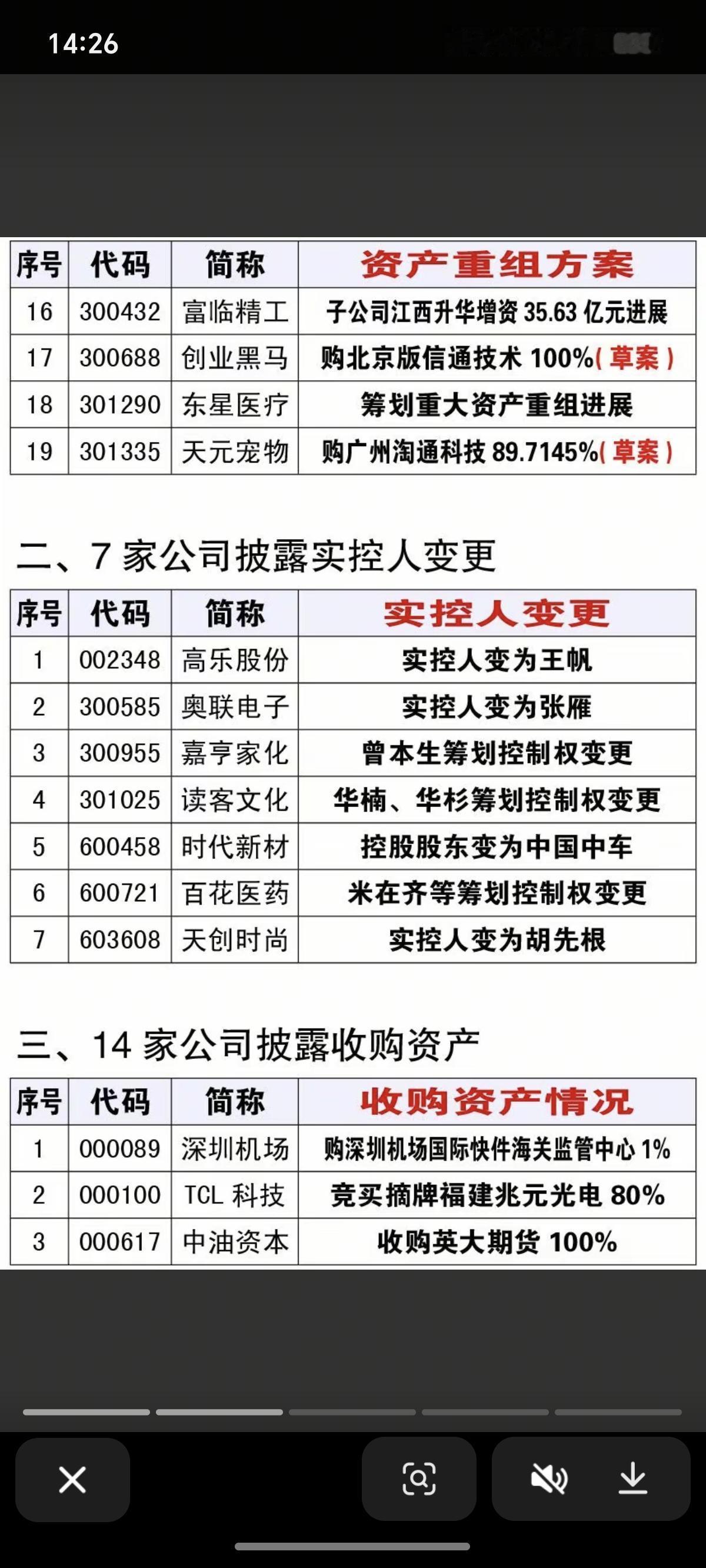 12.27周六最新:资产重组,实控人变更,股权转让公告! 一、19家公司披露资