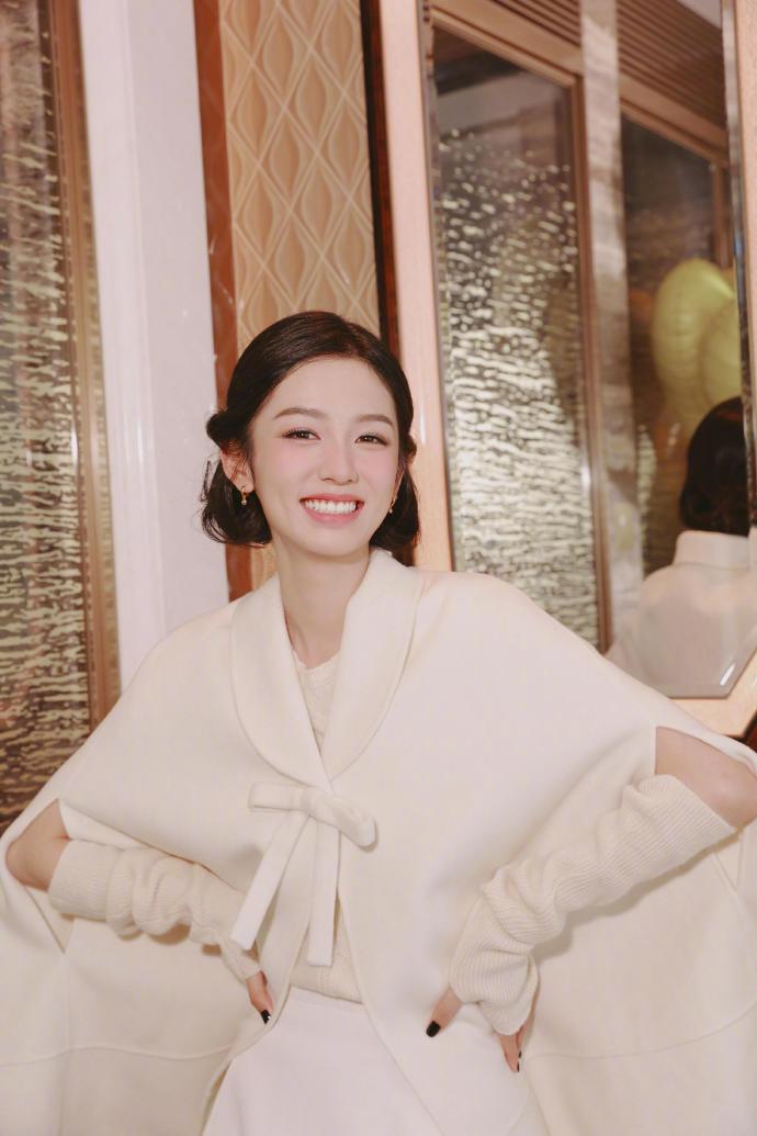 周也云上白雪大小姐的含金量 周也今日出席线下活动造型,身着毛呢斗篷外套、针织衫