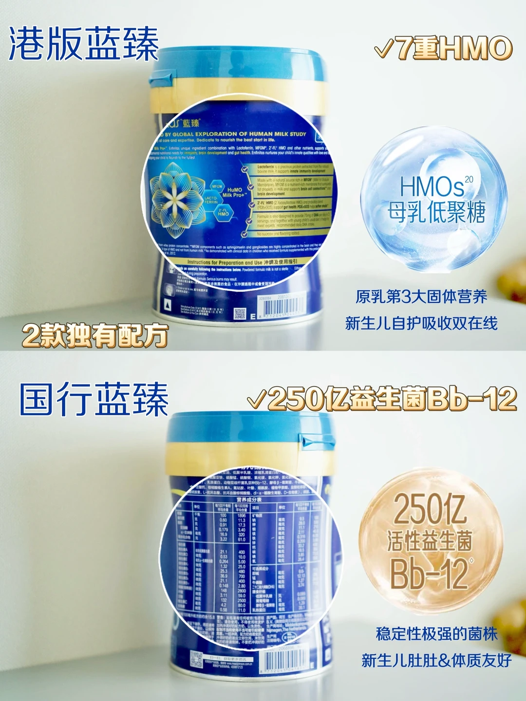 ✨港版蓝臻添加了7重HMO,有助于提升新生儿自护力和吸收力。
