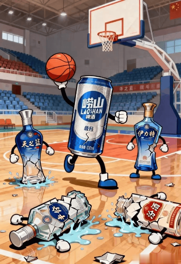 配文:在青岛男篮击败山西男篮后,一幅描绘CBA球队酒类冠名商“内战”结果的趣味图片也随之问世,图中,崂山啤酒干翻了四大白酒。青岛男篮在杨瀚森登陆NBA后势头不减,这在某种程度上也得益于青岛啤酒旗下的崂山啤酒的真金白银鼎力支持。