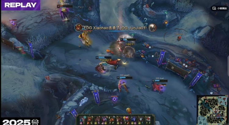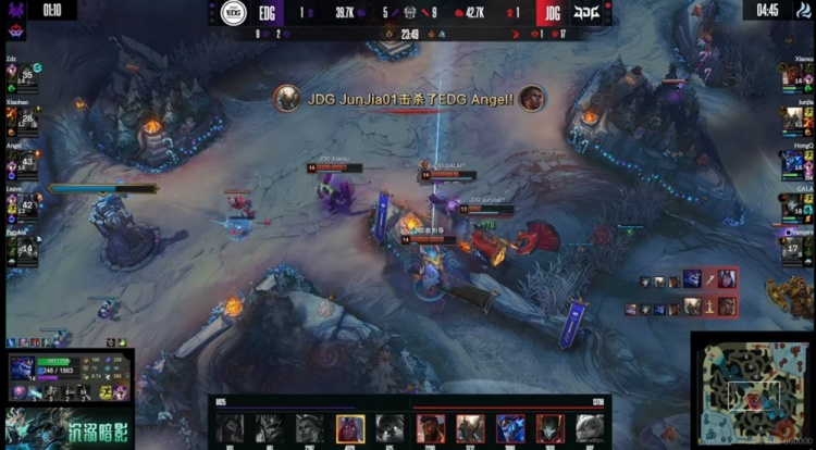 [38:32]JDG打出0换5团灭EDG,中路一波结束比赛!