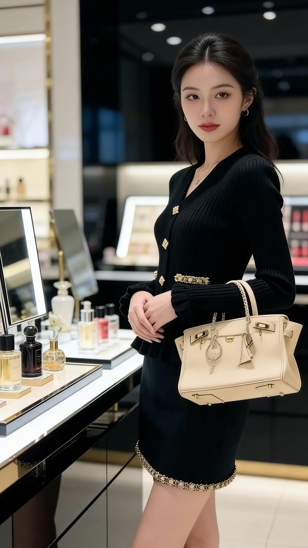 都市时尚穿搭指南:优雅棕色连衣裙搭配黑色口罩,尽显现代都市女性魅力。