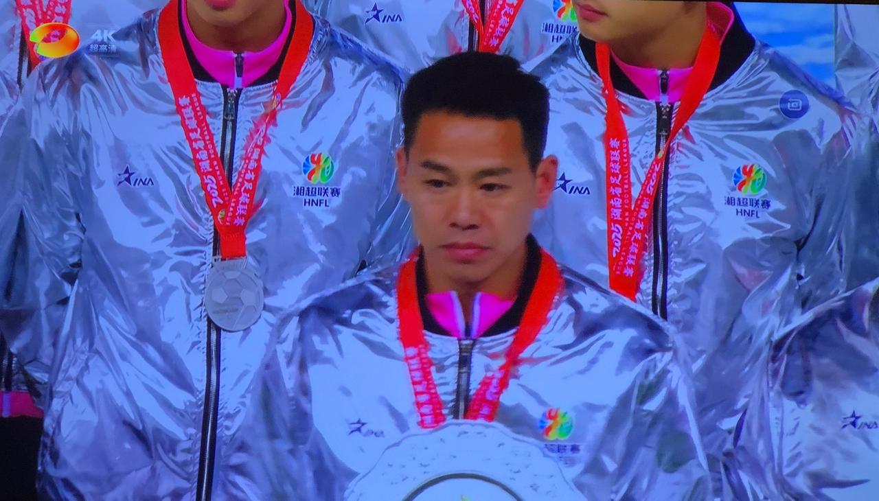 没有一个人有笑容!其实湘超的亚军, 第一次就拿了亚军,常德队的表现也很不错的了。
