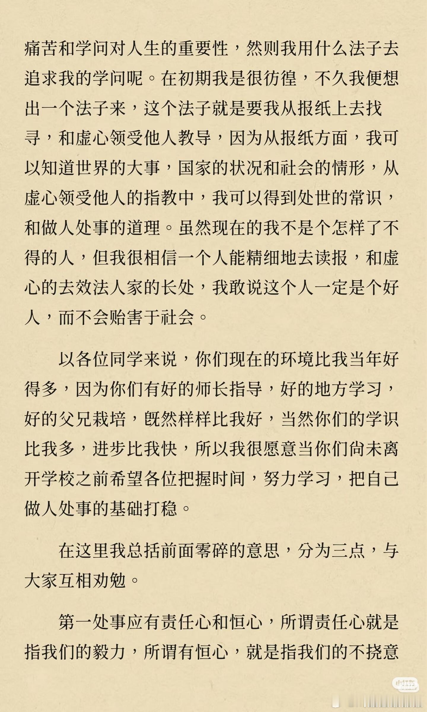 电视剧风与潮 何贤先生给中学生演讲的全文,真的是谆谆教诲,他让中学生做到的三点,他自己都做到了,知行合一!