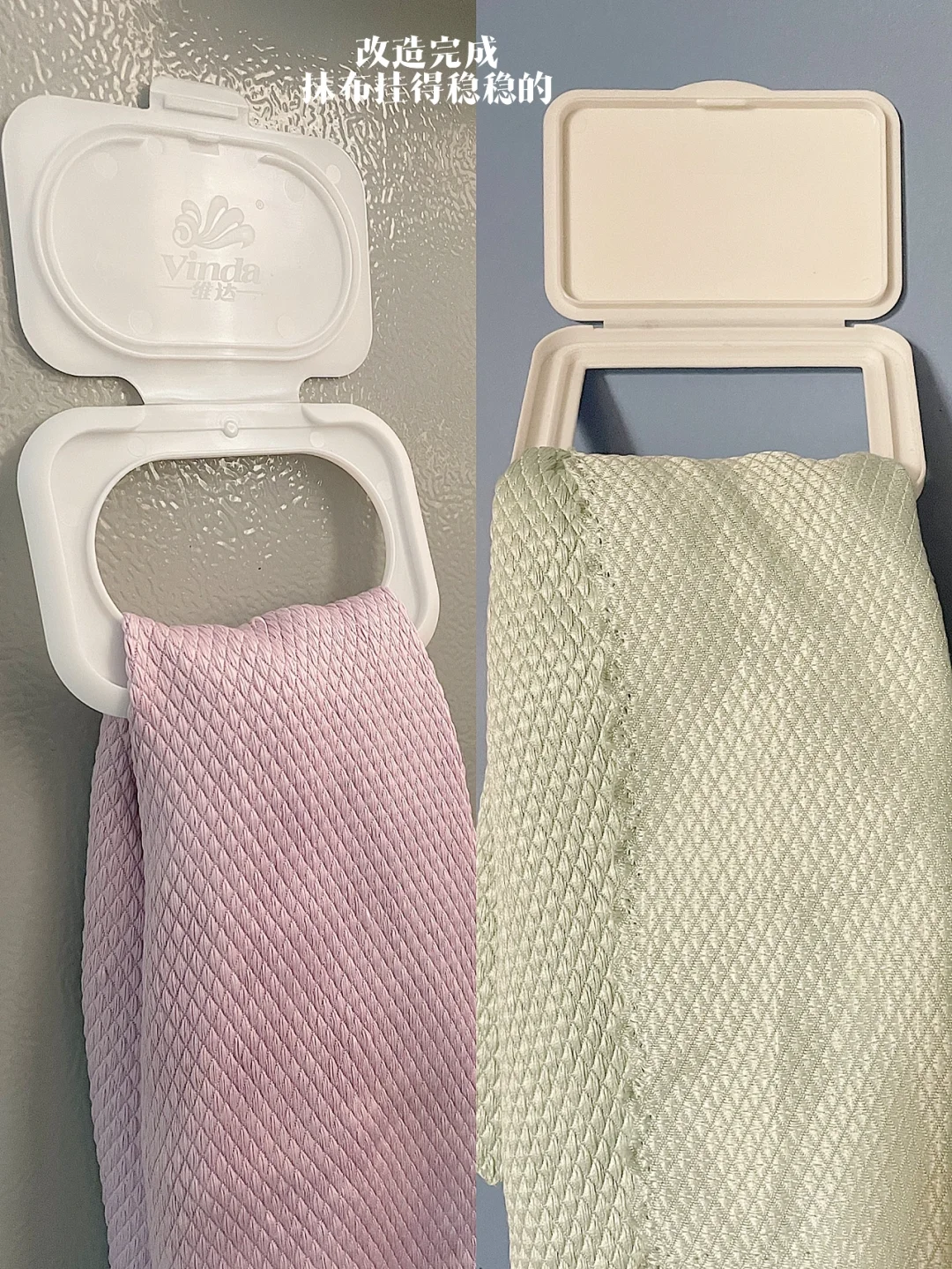 1⃣️把湿纸巾的盖子改造:变成挂抹布的架子,免费又实用。