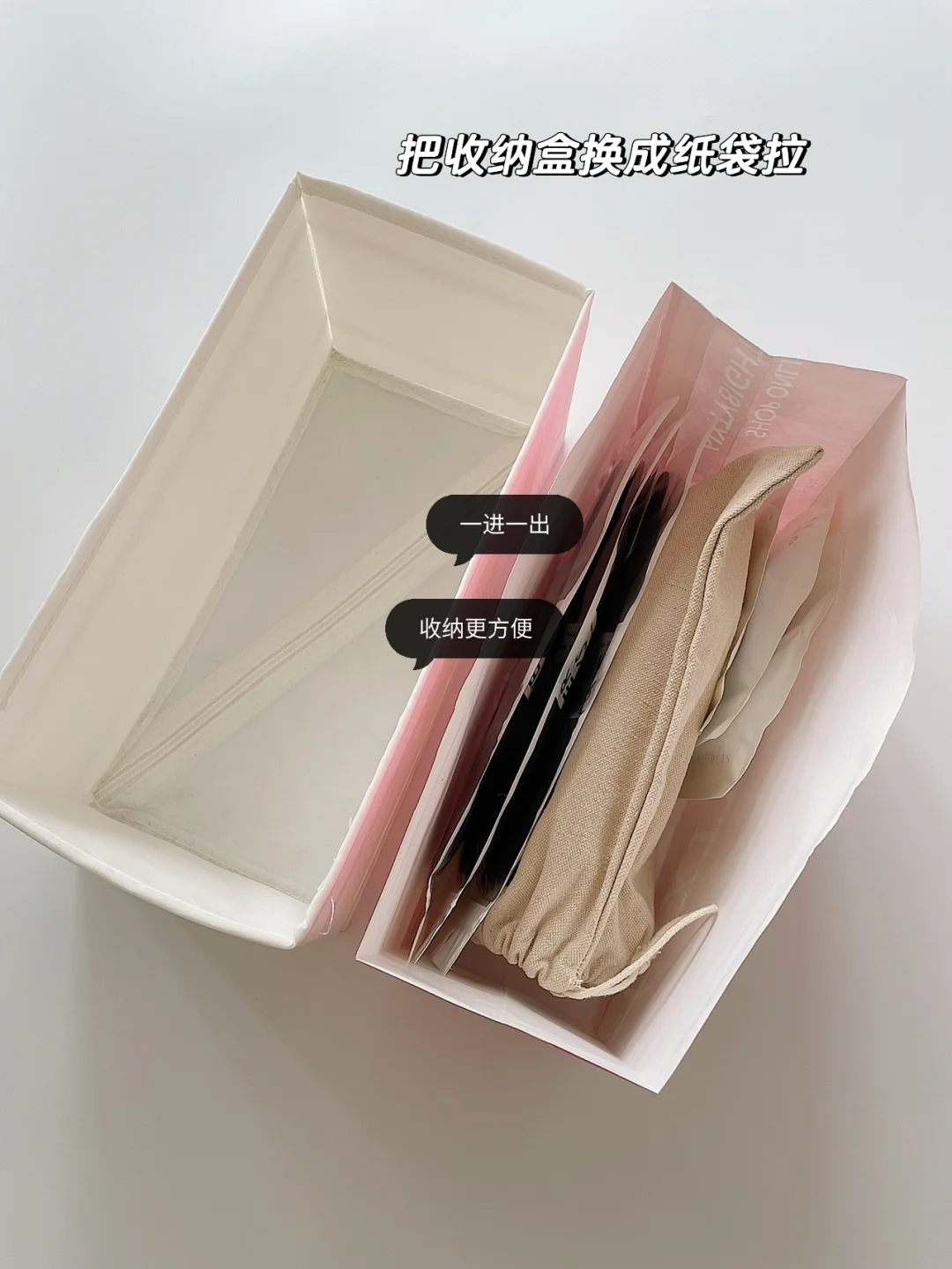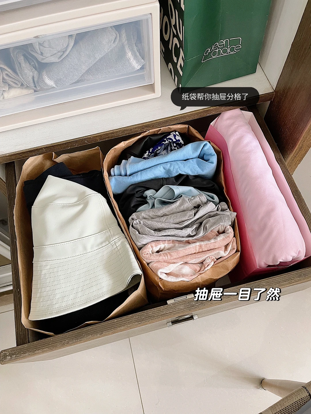 大家还能想到什么好妙用?我把家里的收纳盒都断舍离了,换成纸袋,把纸袋利用起来吧。