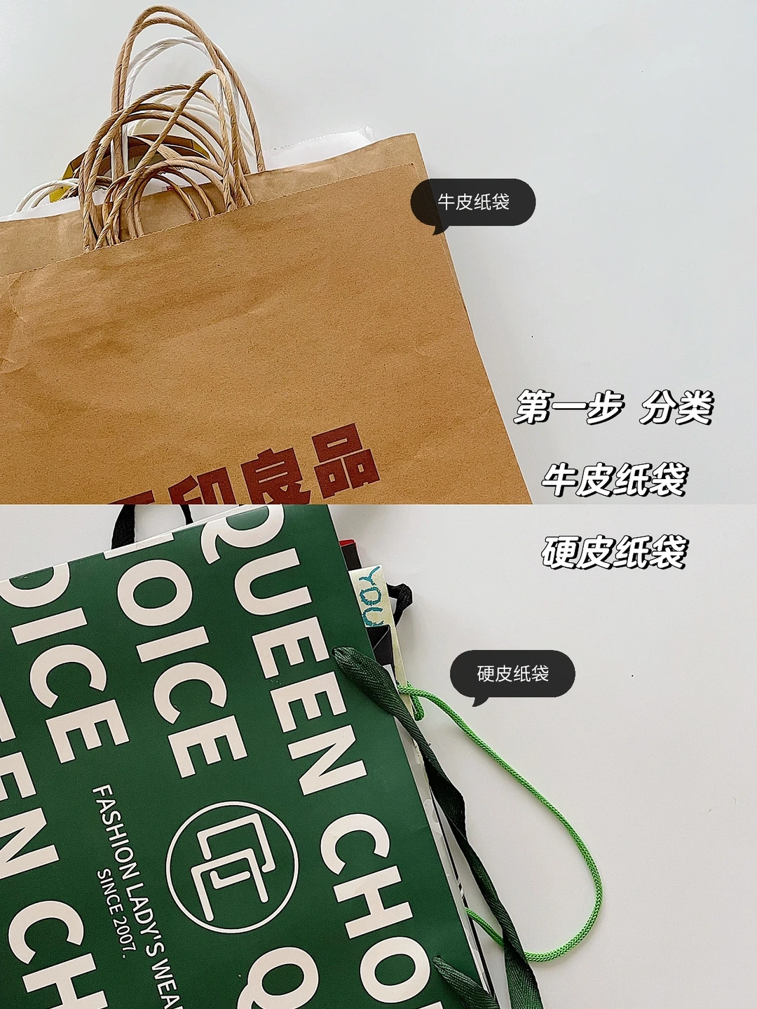 1⃣️分开牛皮纸袋和硬皮纸袋