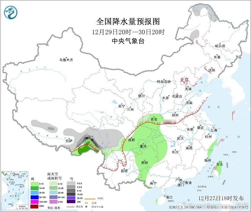 【跨年降水过程】昨晚到今天,我国降雪主要在新疆北部。新疆站点也是包揽了24小时降水榜前19,塔城出现大雪。我国其他大部地区无降水。未来2天降水依然很少,零散分布在西南和东北。不过从30日开始,天气形势有变化,南支槽发展,槽前暖湿气流北上,同时东部地区冷空气南下经过东部海区回流,冷暖交汇,导致12月31日-1月1日,黄河以南有一轮大范围雨雪过程。目前看陕西南部,河南,湖北西部和北部,安徽中北部,江苏北部,雨雪相态复杂,有可能先雨后雪。如果降温快一些,水汽输送持续长一些,利于降雪更强。但反之降雪会调少。因此还有较大变数,关注临近报修订。
