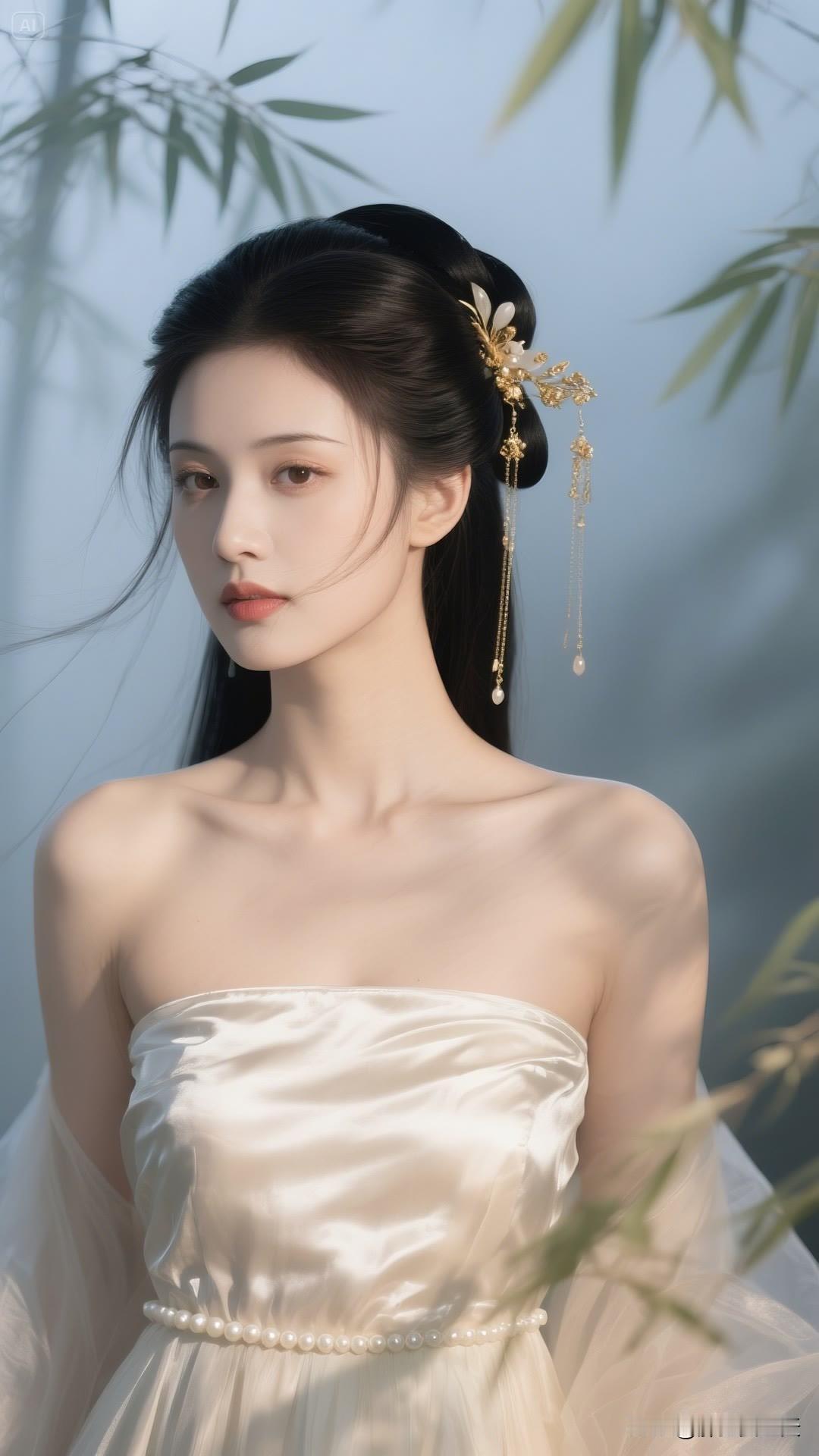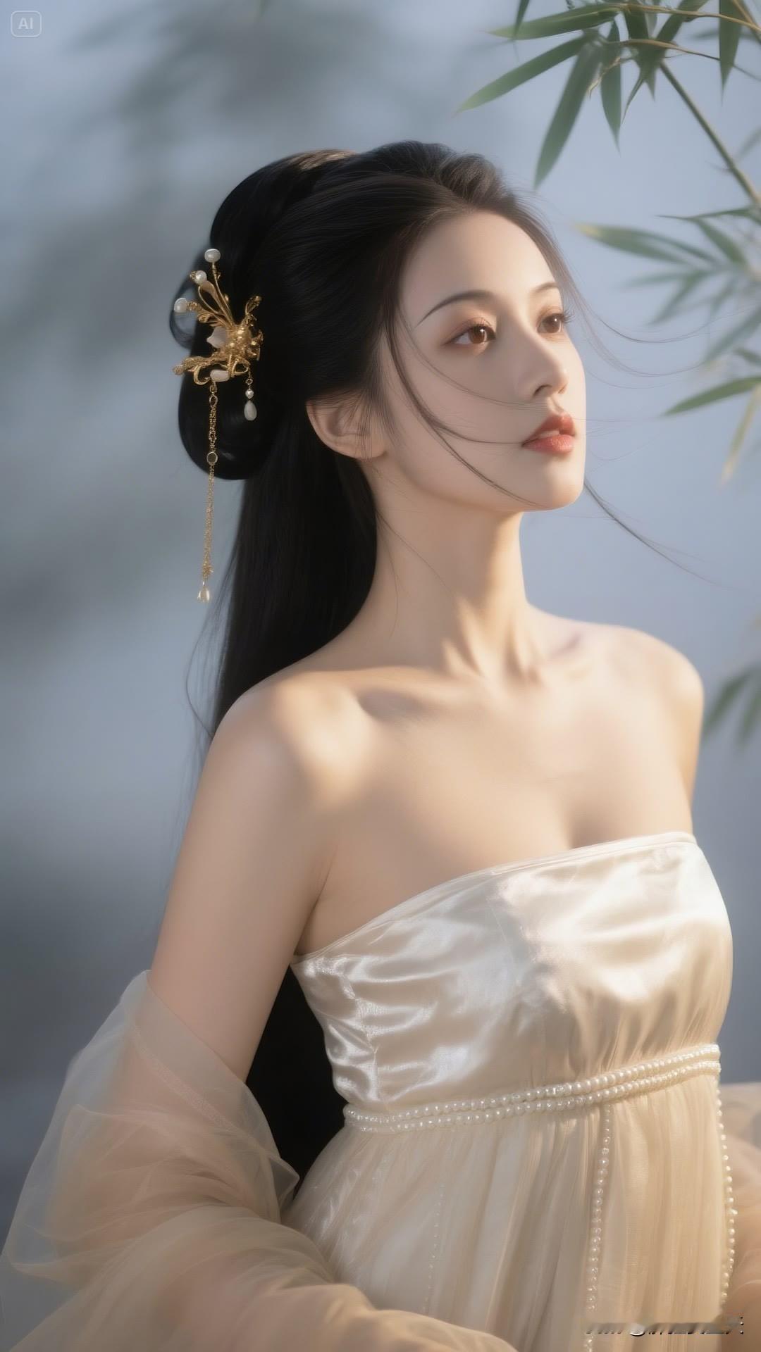 一袭白裙,两弯黛眉,古风妆容与发型尽显古典韵味,古装美女来袭。汉服古典人像 古典