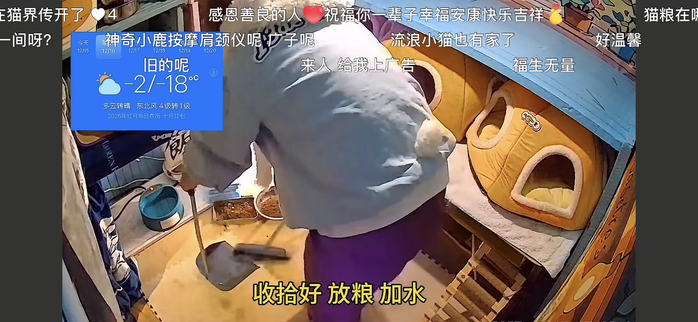 刷到这个,哇,原来我有好多同路人。零下18度,猫咪们有了温暖的驿站。坏的是人,好的,也是人。在我的院子里也定制一个小木屋,给猫咪这样的驿站,成了我2026的目标。第一次看到网友催主包上广子的,就担心主包没钱买猫粮给猫客人们了……真的,只要介入了猫咪们的猫生,你就知道,你根本无法放下他们。
