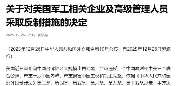 中国反制20家美企背后:稀土成致命软肋? 这事闹得真不小。12月26号那天,中国一纸名单直接震动了五角大楼——20家美国军工企业、10名高管,全被拉进制裁名单,谁也别想再碰中国市场。你可能觉得就是个“不欢迎”,但后面的动作才叫狠。稀土出口管制层层加码,从原料到技术全线卡死,连转口贸易0.1%的含量都盯得死死的,几乎断了所有后路。美国军工业那根命脉,正一点点被掐住。 要不是这次出手,很多人还真不知道,美国那些高精尖武器,原来这么依赖中国的稀土加工。一架F-35,光是稀土就要用掉408公斤,发动机涂层、雷达磁体、隐身材料,哪个环节离得开?这还不是个例。宙斯盾系统、战斧导弹、第六代战机F-47,全都指望着中国产的钐、钆、镝这些中重稀土。数据摆在这儿:87%的美军主战装备供应链,绕不开中国稀土。你说这不是“命根子”是什么? 而2025年10月商务部那六则公告出来之后,情况就彻底变了。从原料开采到终端应用,整条链子都被管死了。最绝的是那句“向境外军事用户原则上不予许可”——意思很清楚,被制裁的企业,一克都不给。这下可好,连澳大利亚、加拿大那边想当中间商转手的路子也都被堵死了。以前还能绕道,现在人家连0.1%的含中国稀土成分都要查,根本没空子可钻。 市场反应快得很。2025年4月刚一限出口,镝和铽的价格一个月涨了三倍,创下历史新高。美国军工企业的库存扛不了多久,最多撑半年。F-35 Block 4升级项目已经从2029推到了2031,项目进度明显拖后腿。F-47那边更悬,图纸画得再漂亮,没材料,造不出来就是白搭。 美国不是没试过自救。拜登那会儿就开始砸钱搞本土稀土,五角大楼投了一堆给MP Materials,还拉上盟友搞“稀土联盟”。可现实摆在眼前:环保成本是中国的2.3倍,建完整条生产线得十年起步。那家公司核心业务还卡壳,指望不上。有人鼓吹MagNex磁体能替代,结果性能只有钕铁硼的一半,军方看了直摇头。格陵兰岛倒是有矿,但丹麦不松口,自己也没加工能力,远水解不了近渴。 被制裁的企业里,安杜里尔工业公司创始帕尔默·卢基最有意思。被点名后还在网上发帖说感谢这份“圣诞礼物”,笑嘻嘻说自己“在中国压根没钱,查封等于零”。这话听着挺硬气,可他大概没想到,真正的麻烦是接下来的供应链断裂。诺斯罗普·格鲁曼、波音圣路易斯分部、L3哈里斯、吉布斯与考克斯……从B-2轰炸机到驱逐舰设计,整条军工链条都被端了。红猫控股、蒂尔无人机、伊庇鲁斯这些搞AI武器的新锐公司也没跑掉。 其实早在2022年,洛克希德·马丁就出过事。F-35某个零件用了中国合金,违反国防采购法,五角大楼吓得暂停交付。可查来查去发现,根本绕不开。一个月后,照常发货。这说明什么?不是不想脱钩,是脱不了。特朗普政府那次批了111亿美元军售,以为能大赚一笔,结果中方反手就是一套组合拳——先清企业,再断原料,招招打在七寸上。 现在没人敢说这事只是“象征性反制”了。中国的牌还没出完,但已经足够让华盛顿夜不能寐。那些被制裁的高管或许还在硬撑着发帖逞强,但他们心里清楚——没有稀土,再炫酷的武器蓝图,也不过是废纸一张。