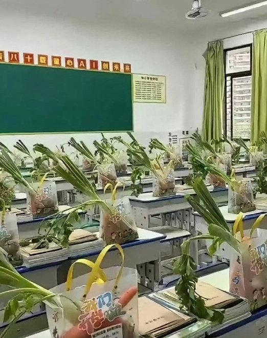 教室课桌全摆上绿植,这操作看懵了!猜猜是老师要求还是家委自发?