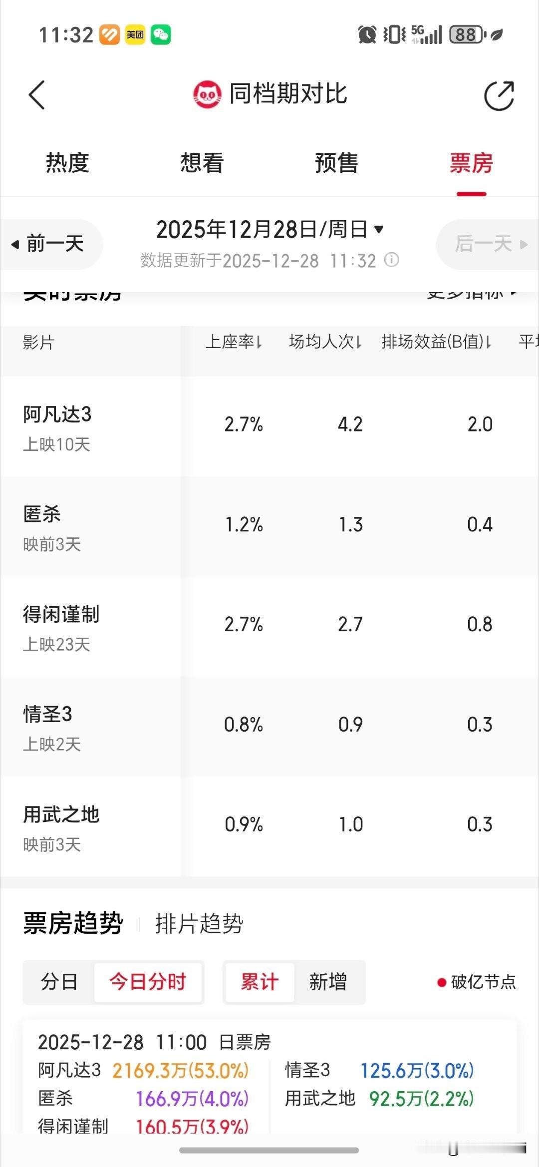 肖战《得闲谨制》凭借2点几的排片,超越新片8和9的排片的票房和上座率,场均人次和
