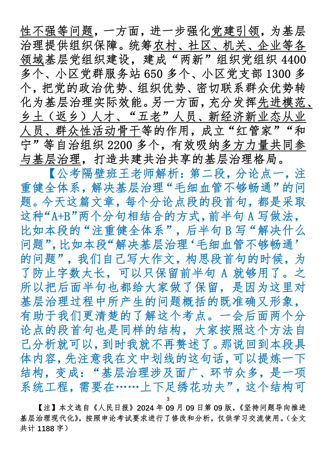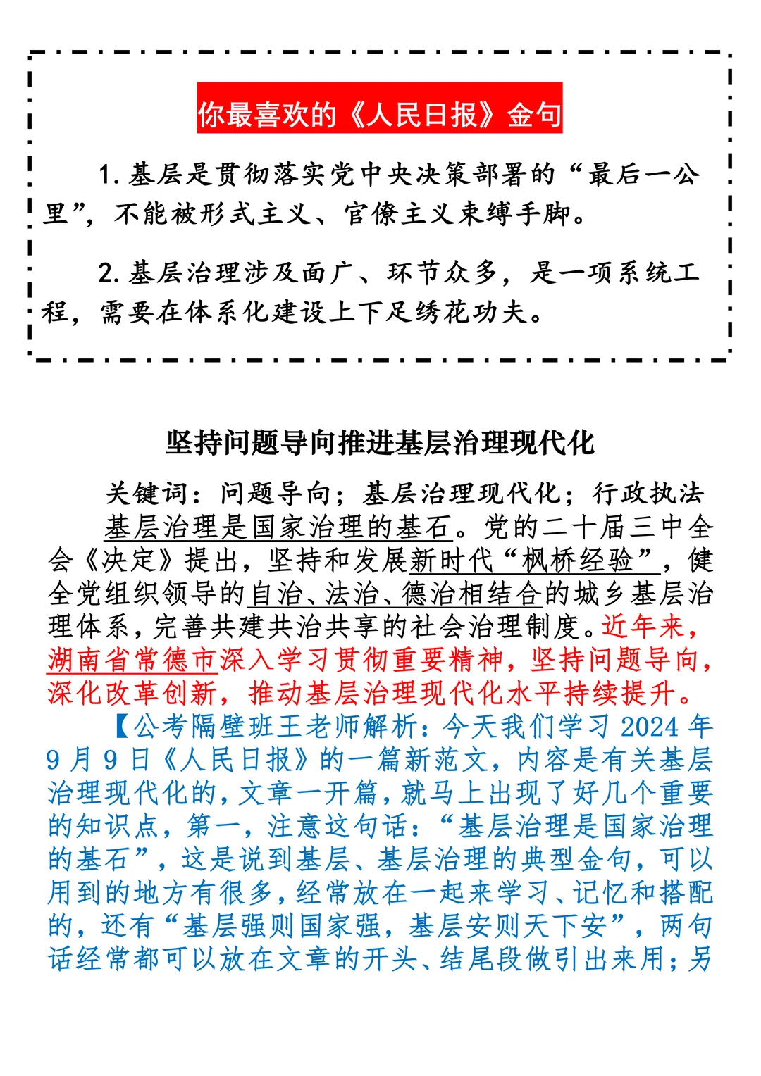 如何抄写:每日抄写文章发在“公考隔壁班王老师”账号,红色字是重点句和结构句,黑色字是正文,蓝色字是解析,大家抄写时不必抄蓝色字。建议先通读全文,做到心中有数再开始抄写,效果会更好。 关于文章:抄写文章来源于人民日报,但每篇文章我都根据申论考试要求进行了修改:一是重写或修改开头、结尾;二是统一段首句句式结构;三是调整段落字数,使文章结构更均衡;四是简化复杂长难句,使之更具可模仿性。每篇文章无论修改多少,都是基于申论考试要求,毫无对人民日报文章品评之意。(此处致敬人民日报)