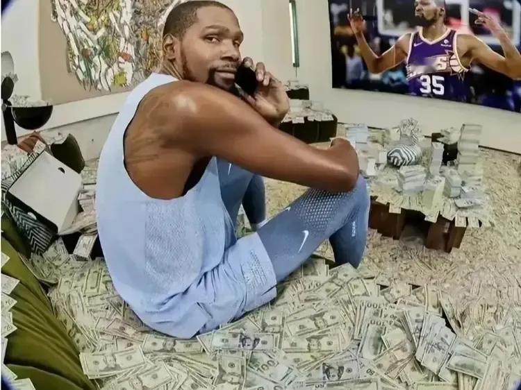 杜兰特一身铜臭,想洗干净都难! 杜兰特拥有约60亿人民币,因钱太多,高调“洗钱”。 杜兰特薪资约5.98亿美金,代言费约3亿美金,投资收益约1亿美金。用不完,根本就用不完! 说真的,NBA顶级球星有钱不奇怪,但杜兰特这有钱的方式,实在太招摇了点。前段时间还有媒体调侃他没女朋友,结果人家直接在社交媒体晒图反击——床上用一沓沓百元美钞摆成个“美女”造型,脖子上挂着粗金链子,手里还端着威士忌,旁边堆着几十捆现金,配文问“这样的女朋友你们有吗”。这操作真的绝了,网友看了都笑疯,有人说“这女朋友没手感没声音,不如换我的来”,还有人吐槽“有钱人连捆零花钱都用橡皮筋,和我一样但又完全不一样”。 他的金钱观也一直很直白,早年追斯嘉丽·约翰逊时发推特说“想喝她的洗澡水”,后来被调侃没女友,又用现金摆造型回应,一点都不藏着掖着。之前参加访谈还说想打到40岁,毕竟多打一年就多赚好几千万,这种实在话换别人可能会委婉点,他倒好,直接挂在嘴边。更让人哭笑不得的是,他2014、2015年买的比特币,因为忘密码丢了好几年,经纪人都说这事儿,结果现在找回来暴涨到两千多万美金,他自己都没当回事,毕竟这钱对他来说真就是零头。 其实杜兰特不光会赚钱,投资眼光是真不赖。投了WNBA球队、电竞战队,连巴黎圣日耳曼都有他的股份,前段时间他的匹克球球队还搞了个美国体育几十年没见过的东主互换,联盟估值都超3亿了。但这些正经事儿没多少人关注,反而每次都是晒现金、网上怼人上热搜。就像之前森林狼的爱德华兹调侃女队医,他直接评论“那你也太弱了,明年又一个单亲妈妈要来了”,精准戳人痛处,网友都笑称他是“推特之王”,嘴毒得很。 网友对他的看法也特分裂。有人说“人家凭本事赚的钱,想怎么晒就怎么晒,黑他的人还在搬砖呢”,也有人觉得“炫富也得有格调,堆现金太低级,显得没精神追求”。还有人说他就是真性情,不会装,网上冲浪比谁都积极,有啥说啥,不像别的明星那么端着。 说白了,有钱真不是错,杜兰特球打得好,会投资,赚钱能力没话说。但公众人物嘛,一举一动都被盯着,有时候太直白太张扬,就容易被贴上“铜臭”的标签。他可能自己觉得就是分享生活、开个玩笑,但在别人眼里就成了炫富。杜兰特 凯文杜兰特 你觉得杜兰特用现金摆“美女”是幽默还是炫富?换成你有这么多钱,会这么高调吗?来评论区唠唠~