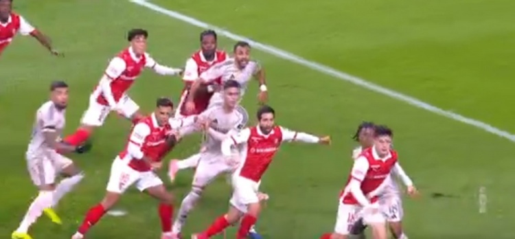 第24分钟,布拉加队员在拼抢中手部有动作。↓