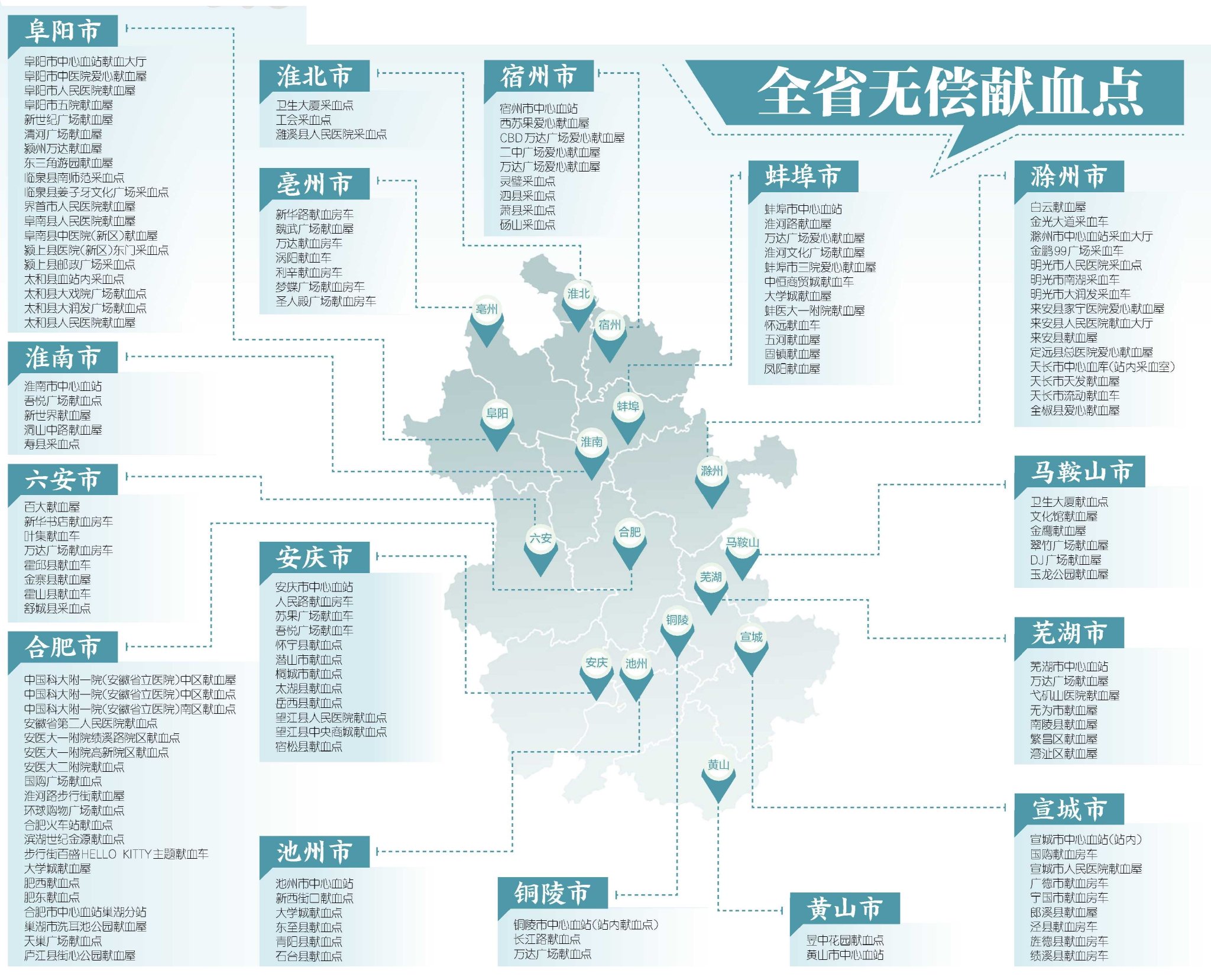 安徽“献血地图”清晰标注了覆盖全省的血站及固定献血点,方便爱心市民就近、便捷地参与无偿献血。