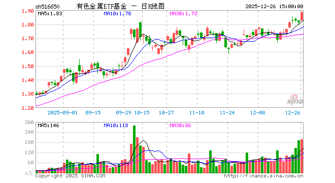 12月26日,有色金属ETF基金(516650)涨3.92%,成交额3.69亿元。当日份额增加9600.00万份,最新份额为17.26亿份,近20个交易日份额增加4.71亿份。最新资产净值计算值为32.47亿元。
