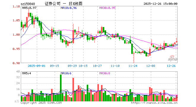 12月26日,证券ETF国联安(159848)涨0.41%,成交额755.10万元。当日份额减少50.00万份,最新份额为1.43亿份,近20个交易日份额减少2450.00万份。最新资产净值计算值为1.40亿元。