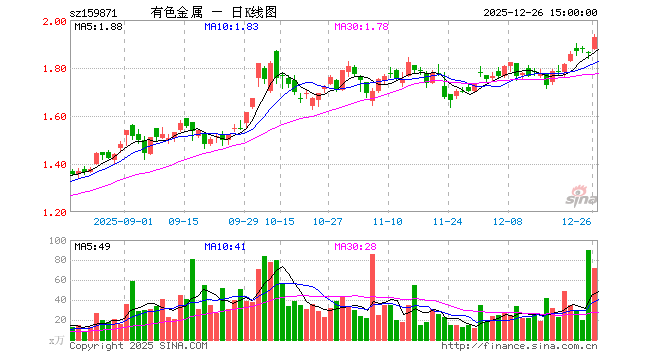 12月26日,有色金属ETF(159871)涨3.66%,成交额1.38亿元。当日份额减少3450.00万份,最新份额为2.46亿份,近20个交易日份额减少1.33亿份。最新资产净值计算值为4.74亿元。