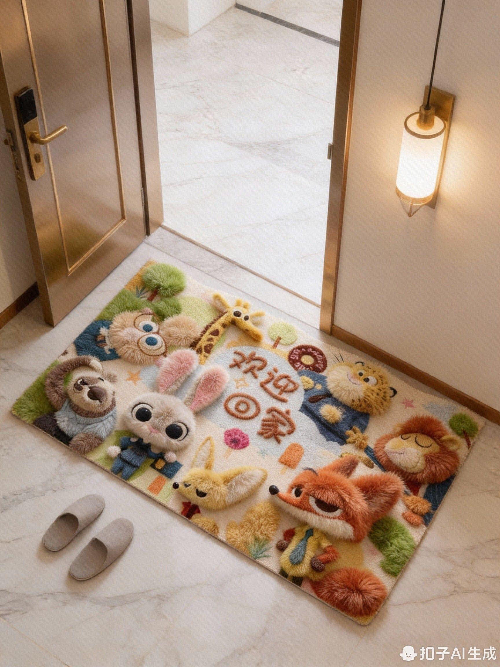 大尺寸吸水防滑地垫,立体卡通图案看着就跟真的一样