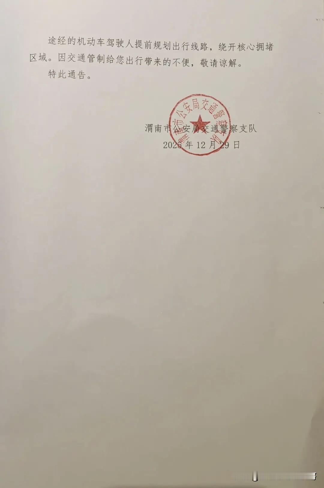 2026年元旦吾悦广场要搞跨年活动,渭南临渭交警发布交通临时管制通告。 记忆里渭南似乎没有搞过什么跨年晚会或者活动! 不管什么活动,安全第一很重要,人太多,不确定因素很多,打算看跨年活动的人千万不要往人多地方凑热闹。