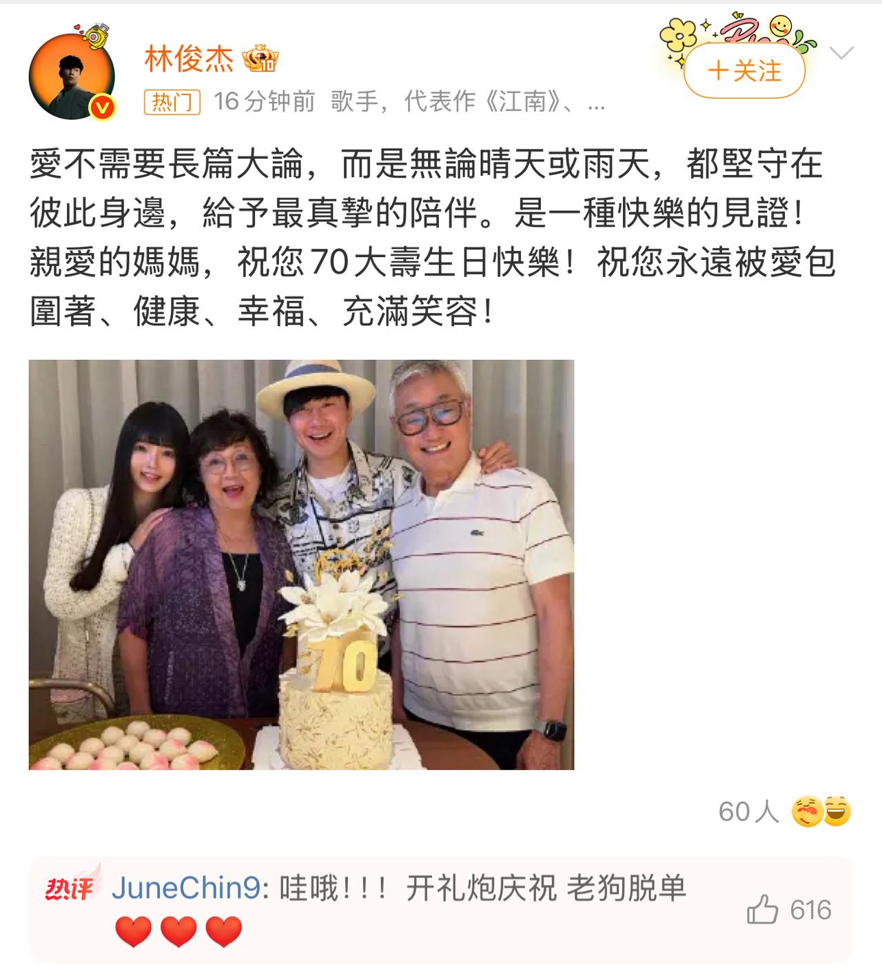 大龄未婚男星的归宿为何都是女网红? 之前林俊杰就曝光与网红七七谈恋爱,但很多人都以为是谣言,毕竟两人相差21岁。 但七七曾多次出现在林俊杰演唱会,坐的还是首排,两人还曾被曝光一起去新西兰旅游。 现在林俊杰直接官宣恋爱,带着七七一起给自己妈妈过生日,四个人面对镜头笑容都很灿烂,感觉已经是一家人的样子。 不过七七看上去真的很显小,和林俊杰站在一起更像父女多一些。