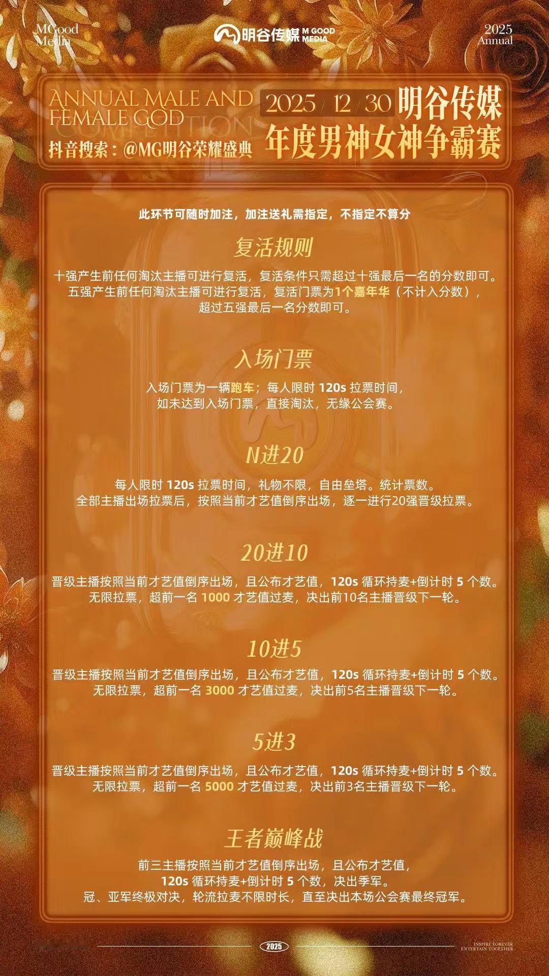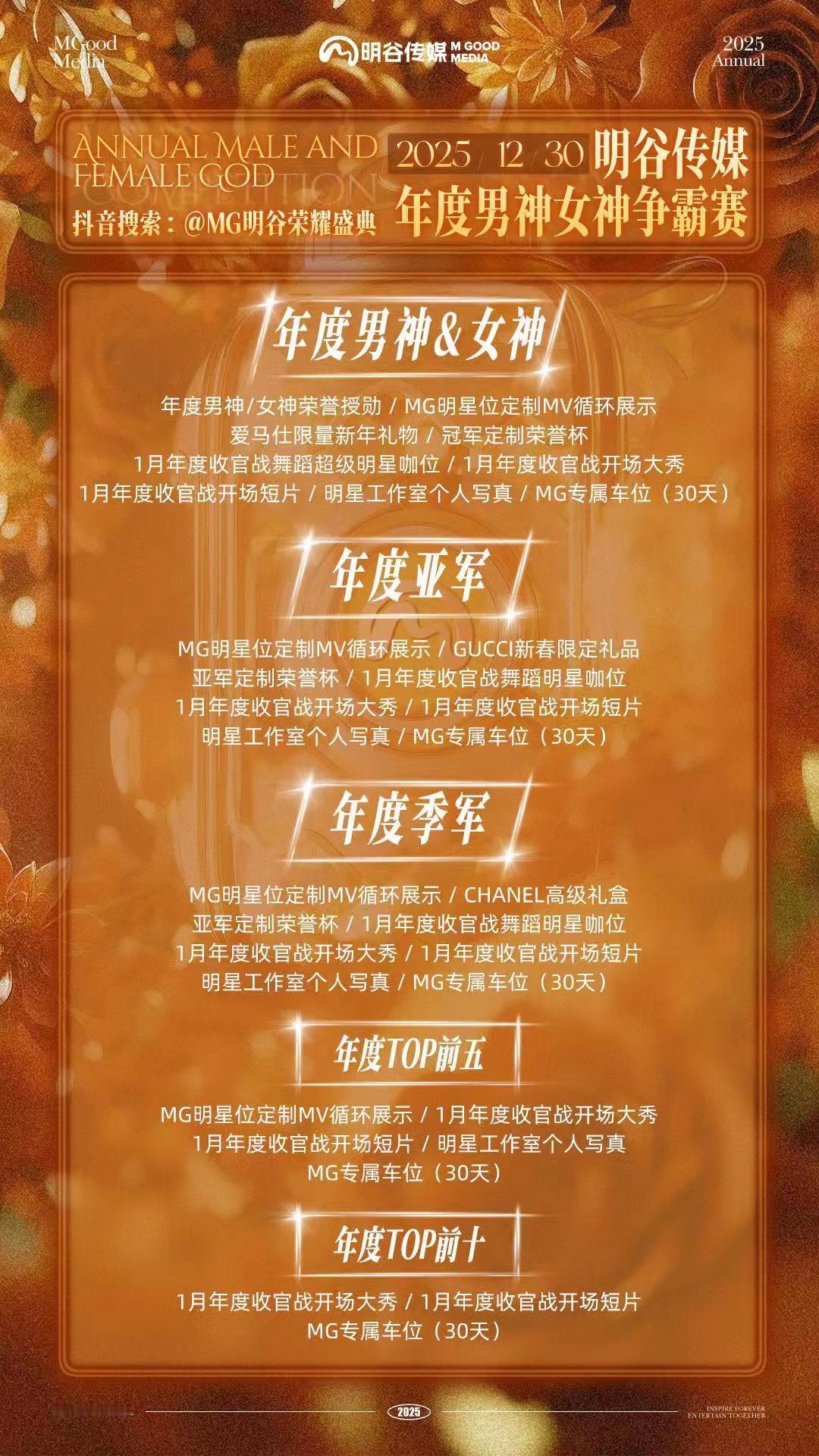 MGOOD【2025年度男神&女神争霸赛】12月30日14:00@MG明谷荣耀盛典 浮光跃金,定义巅峰!