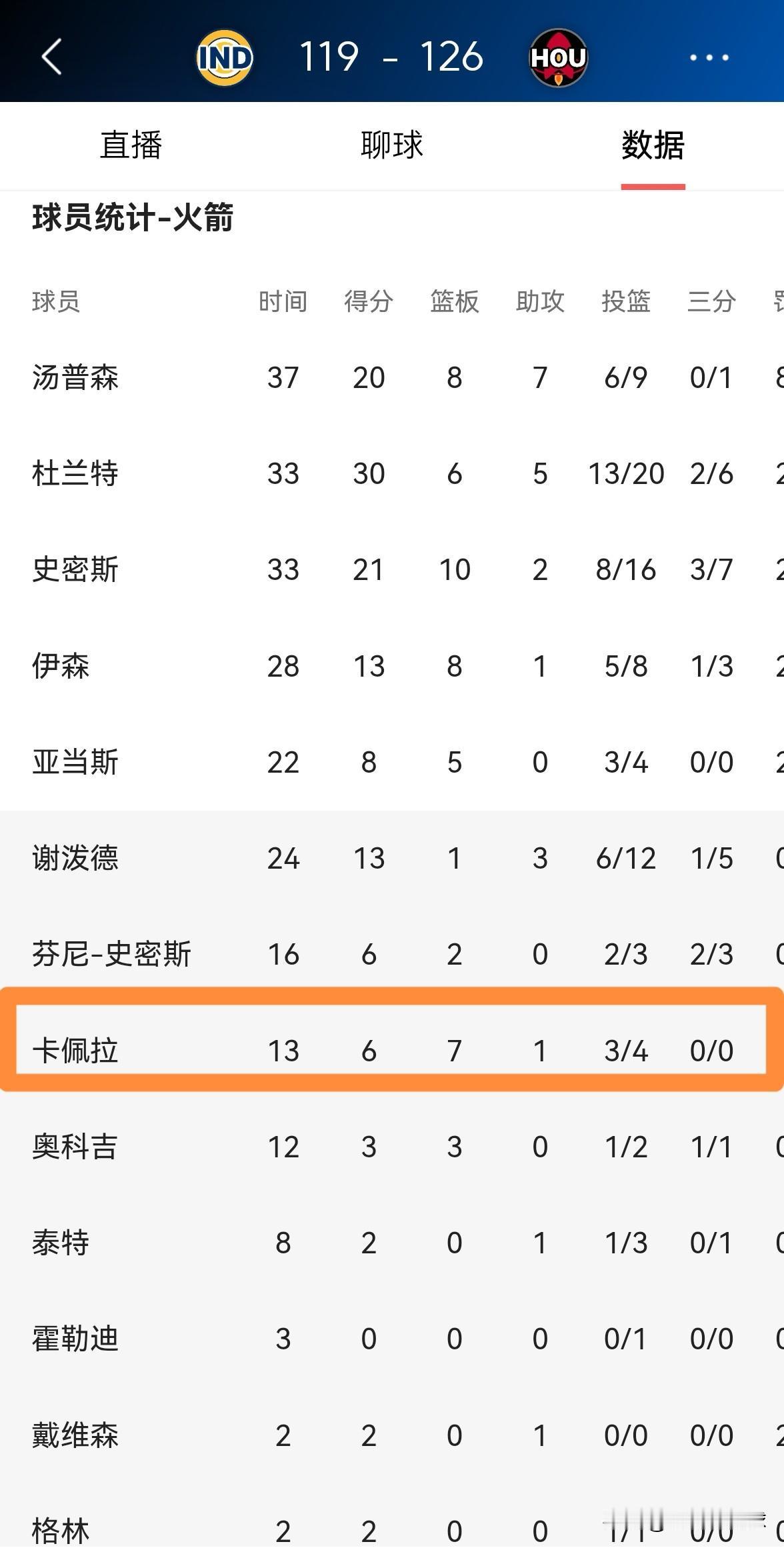 火箭老将卡佩拉即将迎来属于自己的春天!在今天火箭主场以126:119击败步行者的比赛中,卡佩拉替补出战13分钟,投篮4中3得到6分7篮板1助攻,他的场上正负值为+2。值得注意的是,本场比赛火箭的另一名中锋亚当斯因伤提前退赛,再加上正在养伤的申京,这样的话卡佩拉一定会在接下来的比赛中获得大把的上场机会,卡佩拉即将迎来属于自己的时刻。