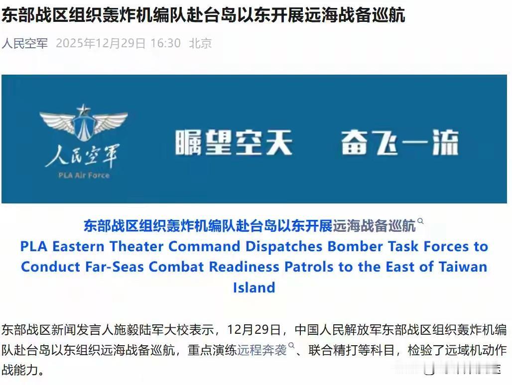 12 月 30 日解放军“南北夹击”:台北方向出现了严崚对峙! 台海巡署付署长谢庆钦紧急召开记者会称,在台湾北部海域侦测到大陆海警船1302,1303号闯越禁水海域,台海巡署调谴"一舰一艇"紧急应对,过程中发生严重对峙,埸面非常紧急,若大陆海警船在抵近极限水界「靠近的话就顶出去」。并表示 12 月 30 日这一天更加的严崚,大陆万吨海警船是否再次进入所谓“禁水域”,台海巡署将会调舰应对! 12月30日,中国人民解放军东部战区组织驱护舰、歼轰机等兵力,位台岛南北两端相关海域,开展查证识别、警告驱离、模拟打击,以及对海突击、防空反潜等科目演练,检验了海空协同、一体封控能力。9时,东部战区陆军部队组织对台岛北部相关海域,实施远程火力实弹射击,取得了预期效果。 东部战区划定的“五大区块”来看已经将台北 台东 台西南 所有的空域 及海域通道形成了层层封堵之态势,有些区域更是贴近了台海 12 海基线以内,恆春以南距台湾仅 4.7 海里, 台东以东距台湾仅 9.7 海里。 据岛内媒体最新消息,台防务部门召开紧急发布会,宣称在29日当天,台军监测到14艘解放军舰艇和14艘海警船,以及89架次军机进入台周边海空域。 面对重重封控之下,台军方表示如有必要将可以“开第一枪”台军舰可以直接顶上去,这表明台军想动手,不过台军真敢动吗?台岛周边空域的 075 轰 -6K,歼-20 构成的海上及空域的立体火力网,而可视化与体系化的作战模式 已经早已让台军战机不能起飞,军舰开不出港 而毫无还手之力之下,台军敢动手吗?如果真动手,那就是敢开第一枪,解放军不会让台军开第二枪的机会! 远程箱火 火箭军导弹 空警-500 已经准备就位!
