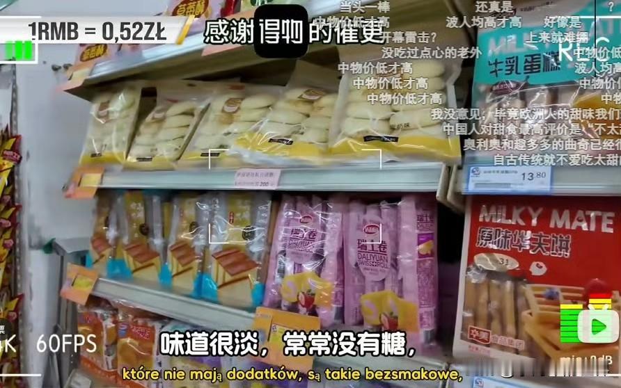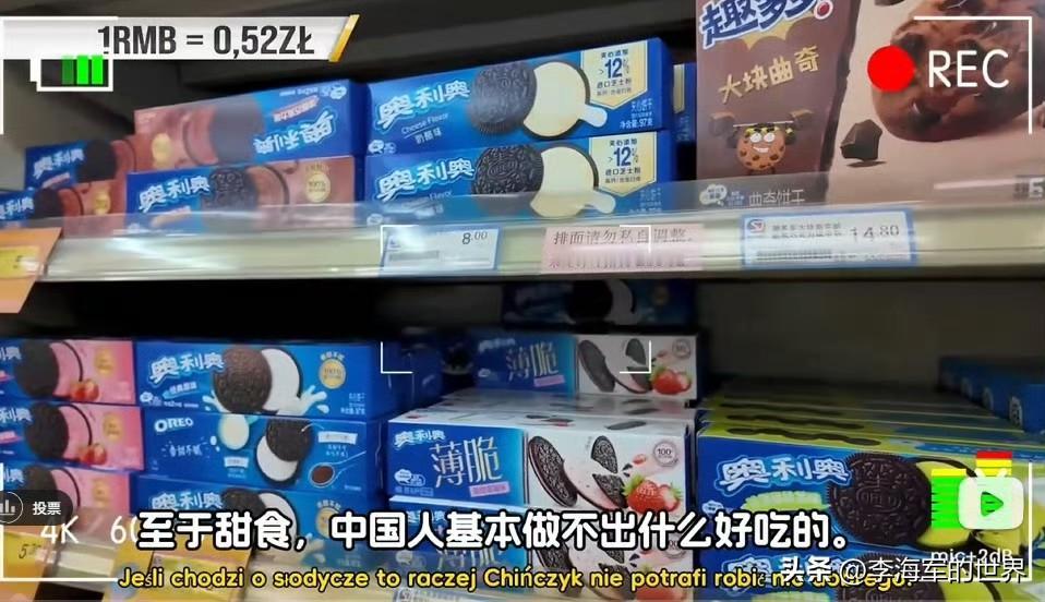 波兰人:中国甜食虽然便宜,但不建议你买,他不甜,不好吃。 一个波兰人在中国超市