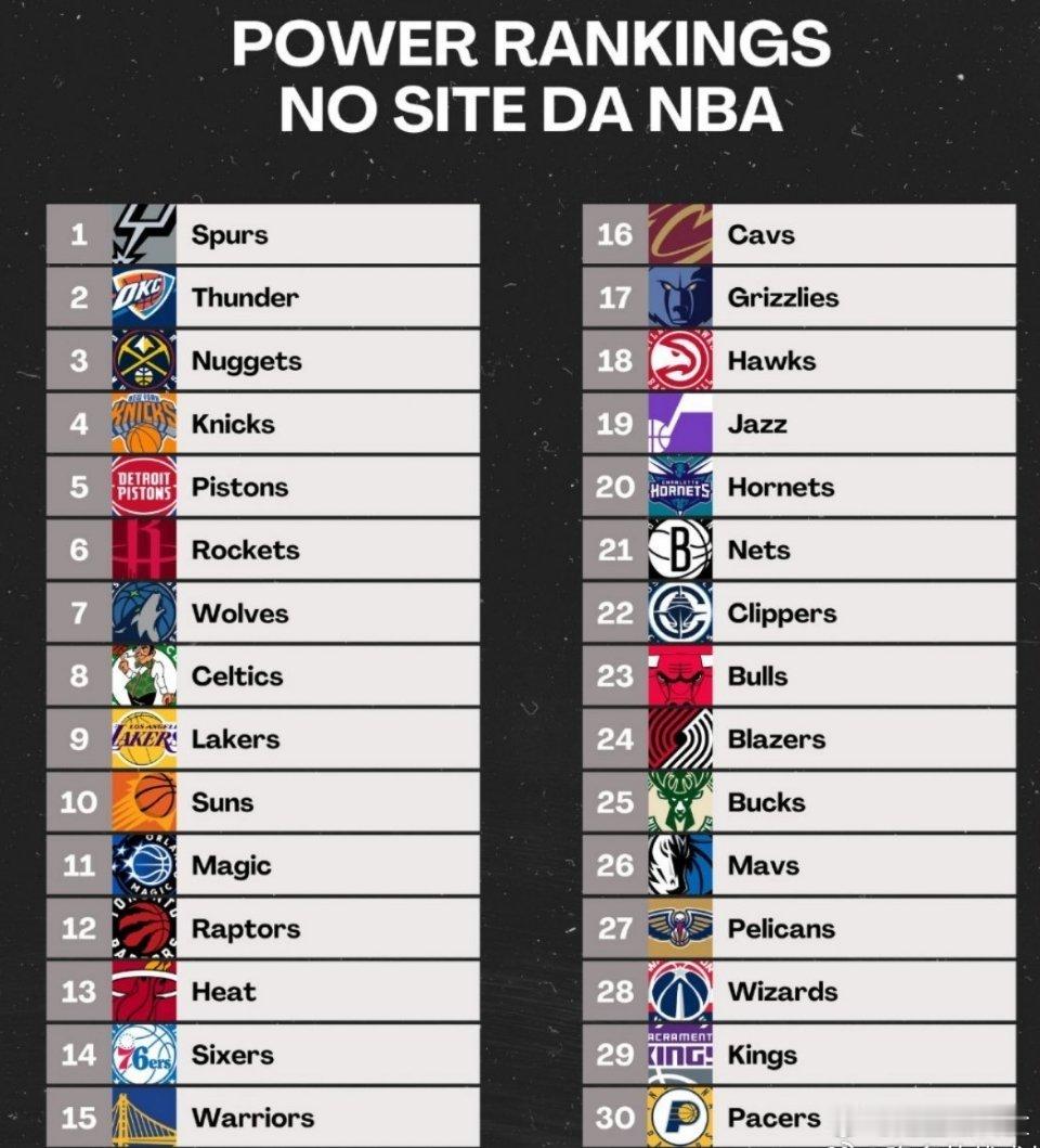 NBA官方发布了最新一期的球队战力榜单:实现“三杀”雷霆壮举的马刺,排名直升4位,跃升至榜首;卫冕冠军则下滑至第二位;掘金队位列第三;火箭队依旧保持在第六名;湖人队从第七位滑落至第九位;勇士队处于第十五位;快船队则大幅上扬5位,升至第二十二名;开拓者队下降4位,排在第二十四位。