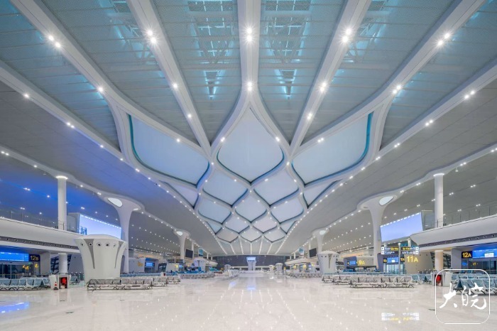 “西站建设过程中,将巢湖水韵、徽风皖韵及科创元素融入建筑细节。”崔强介绍,候车厅的“水滴天窗”运用双曲面参数化设计,再现湖光涟漪;公共空间融入石榴花、青莲、徽派砖雕等地方文化符号,实现功能与艺术的统一。同时,在国内高铁站房中首次大规模采用空心楼盖体系,节约了建材、降低了能耗、优化了空间。