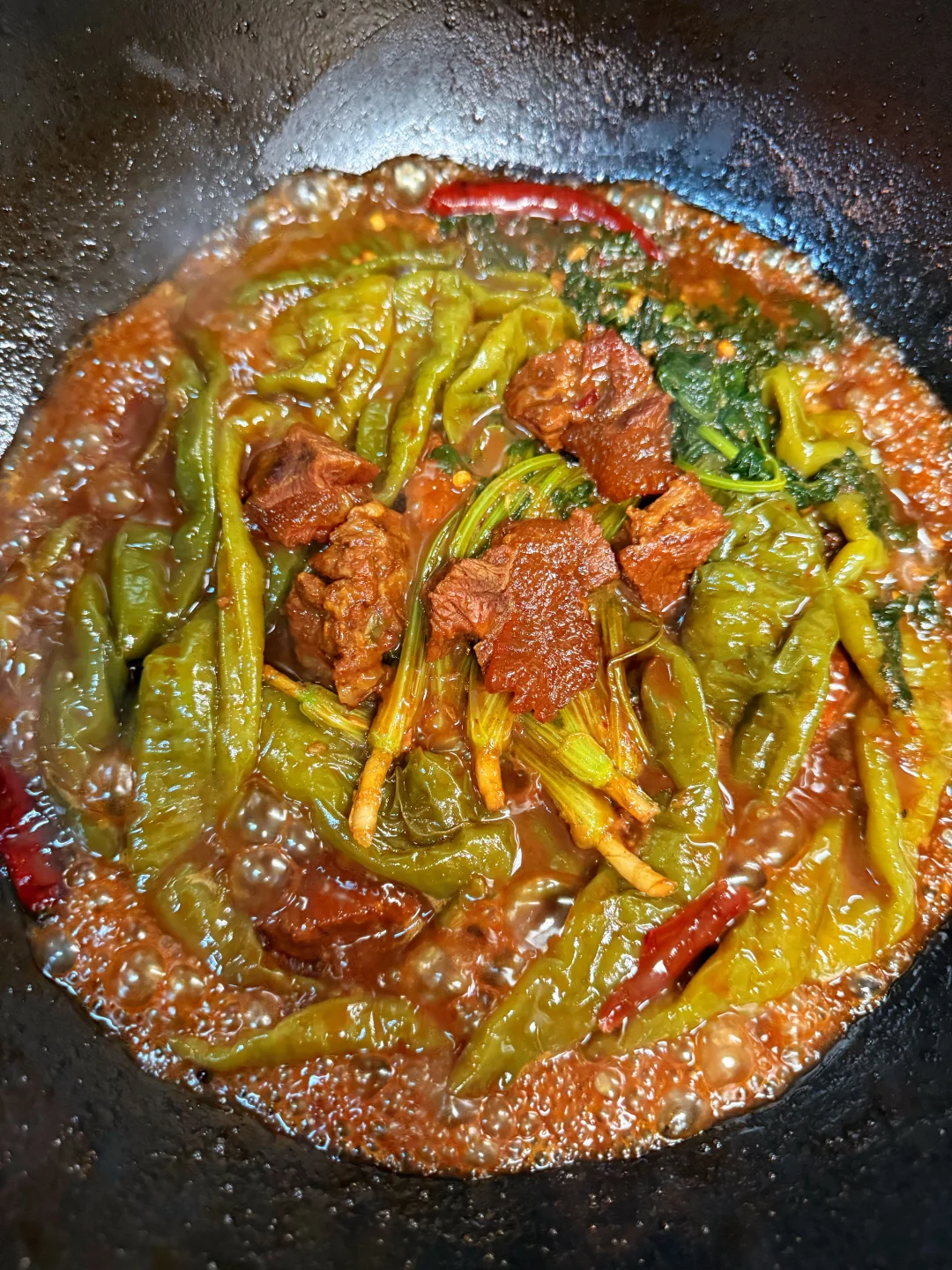 我心目中的下饭菜第一名真的太好吃了[色色R][色色R] 汤汁拌着米饭根本停不下来[萌萌哒R][萌萌哒R] 辣椒牛肉带着酱香,牛肉软烂入味真的太香了[派对R][派对R] 不知道吃什么的时候就试试这个[飞吻R][飞吻R] 这道菜用酱油调味不需要放盐,所以酱油要适量放,我大概放了4汤匙,姐们自己掌控一下量!!!![偷笑R][偷笑R]