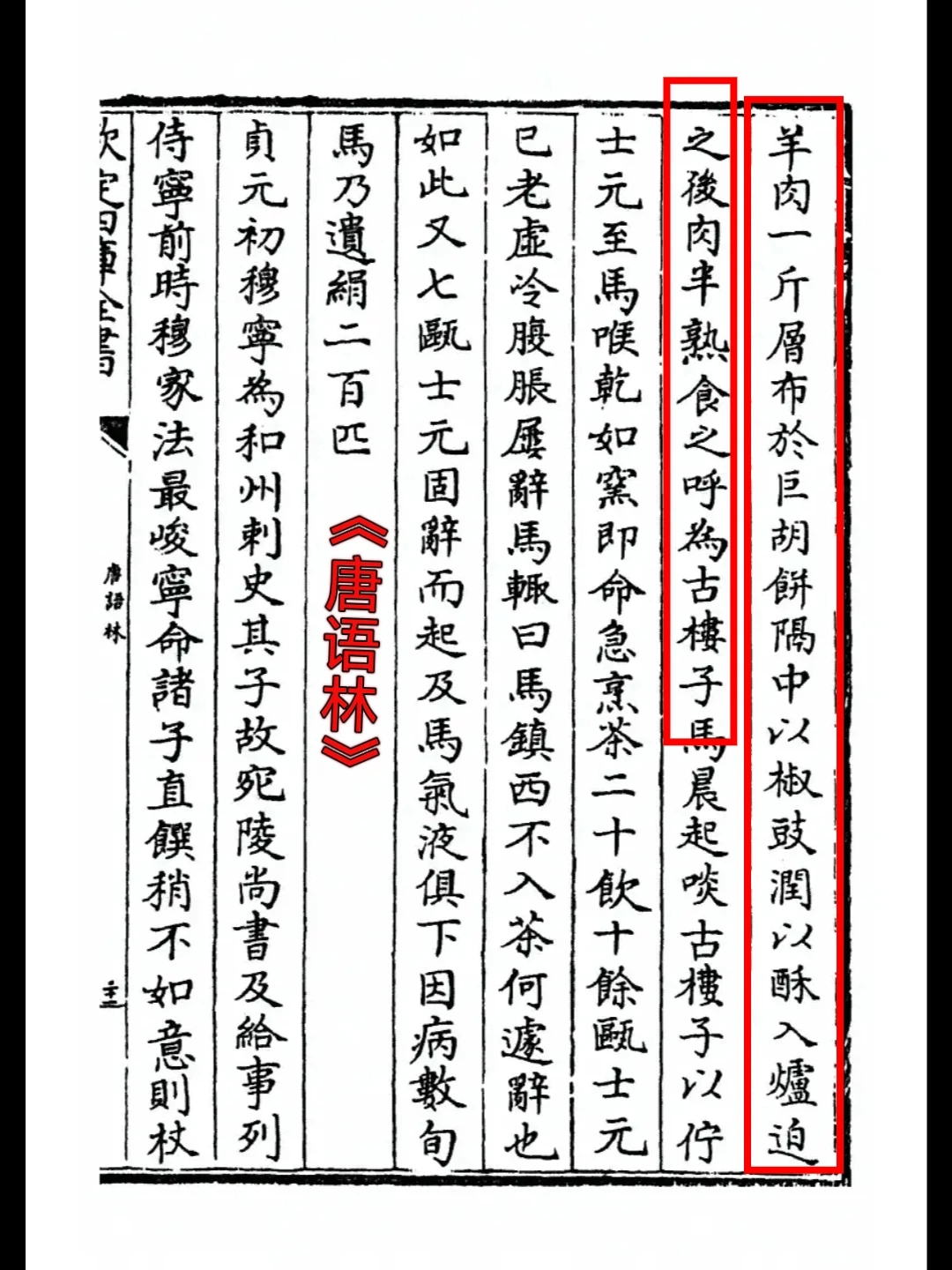 1⃣️《唐语林》记载:“起羊肉一斤,层布于巨胡饼,隔中以椒豉,润以酥,入炉迫之,后肉半熟食起羊肉一斤,层布于巨胡饼,隔中以椒豉,润以酥,入炉迫之,后肉半熟食之,呼为古楼子。”