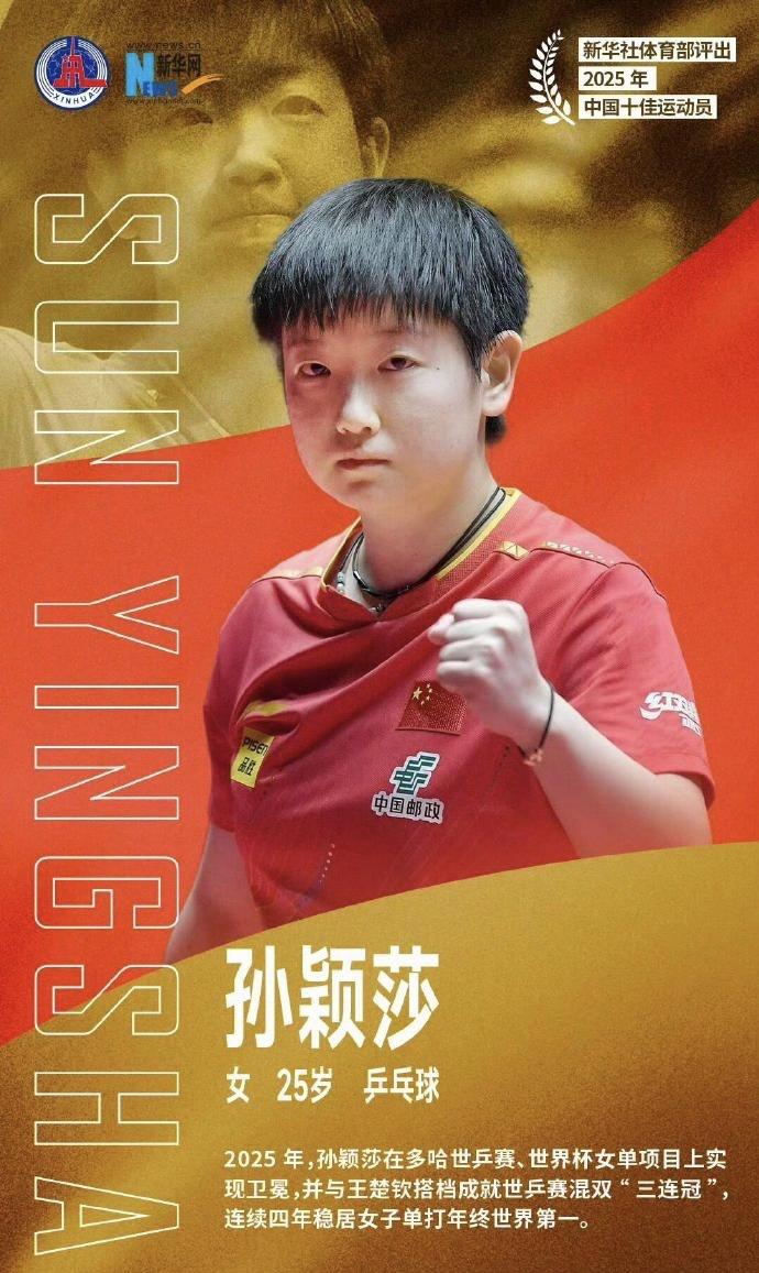 虎扑12月30日讯孙颖莎入选2025年度有影响力的《中国妇女》时代人物。回顾孙颖莎的2025年,全年斩获11个国际赛事冠军,成为首位实现世乒赛女单双圈金满贯的选手。