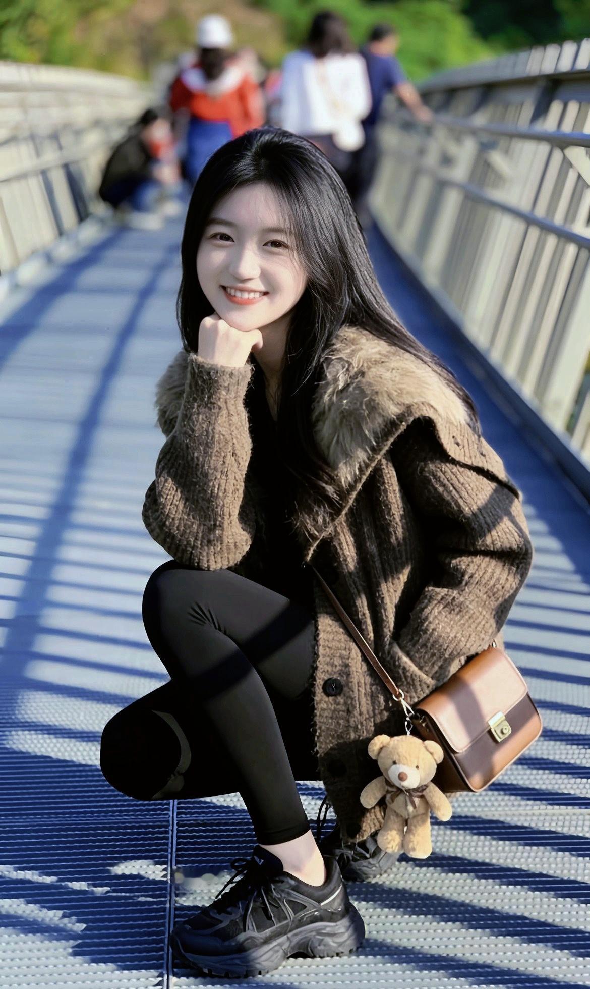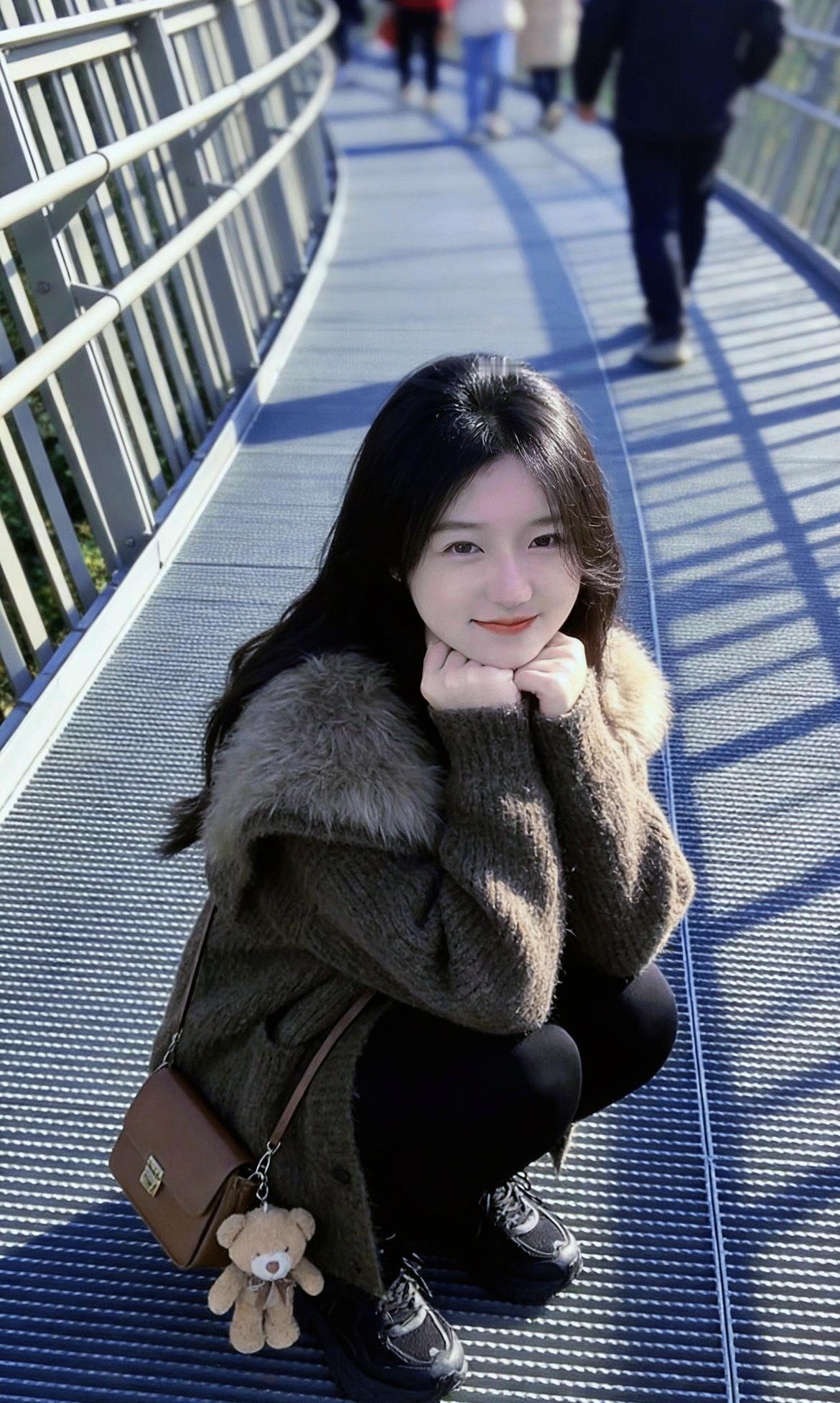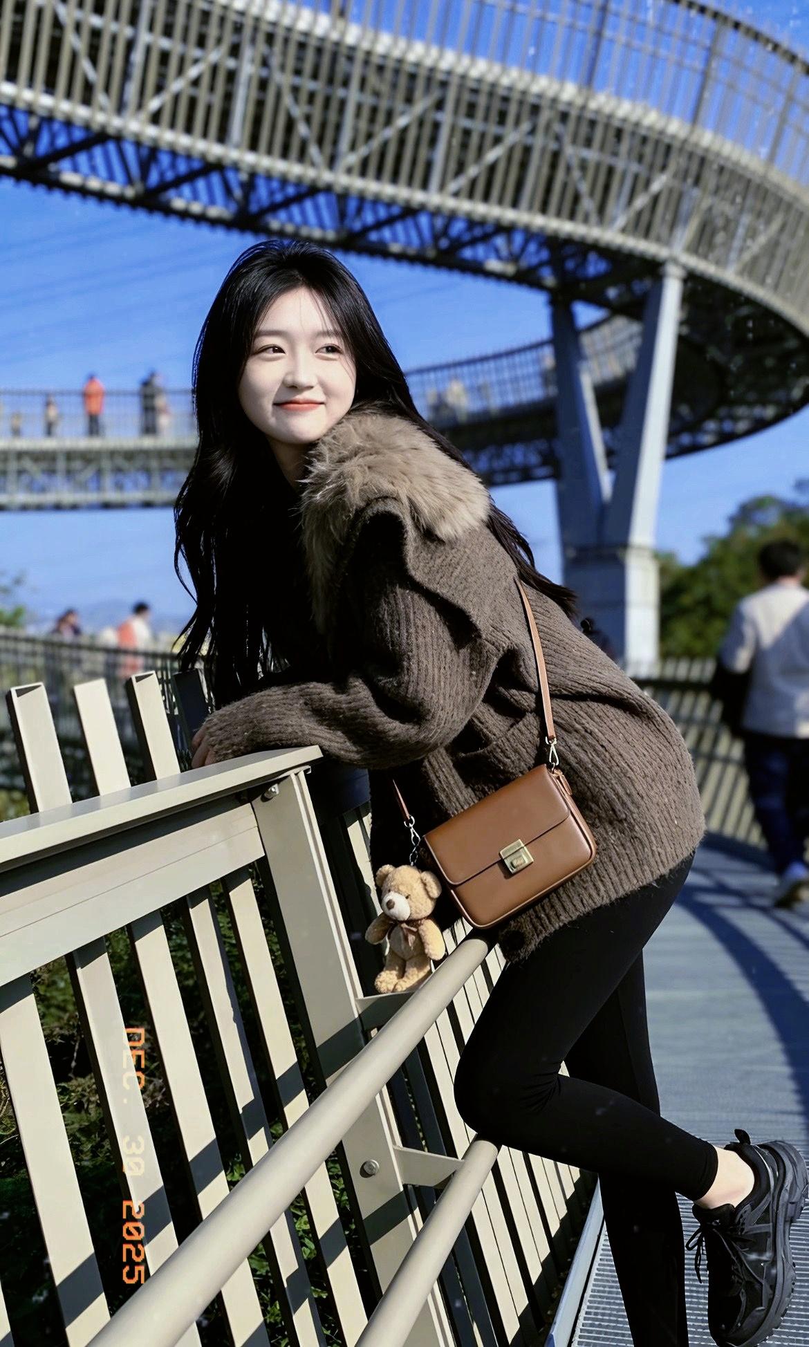 明媚暖阳的一天,少女观光桥游玩的温馨时刻🌞